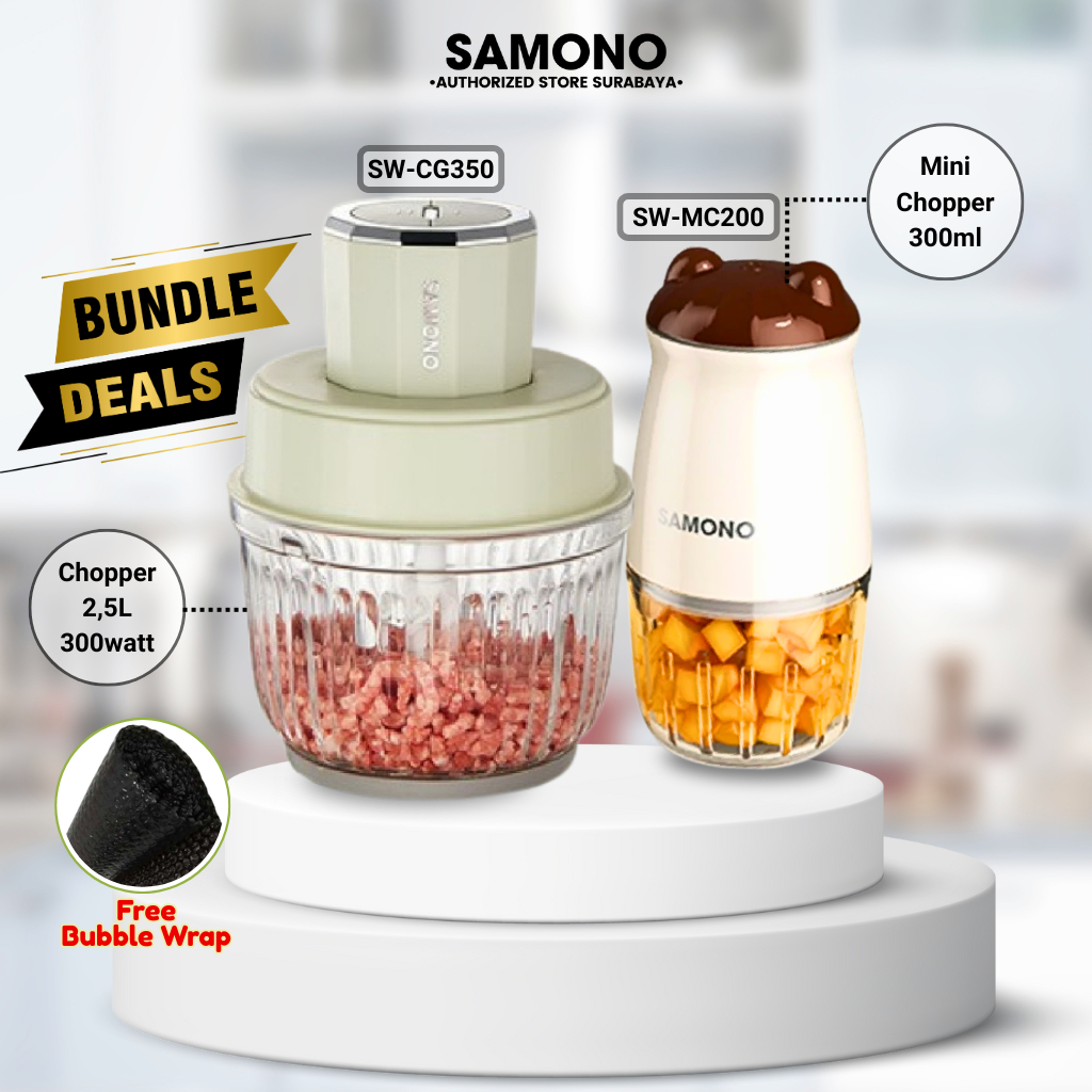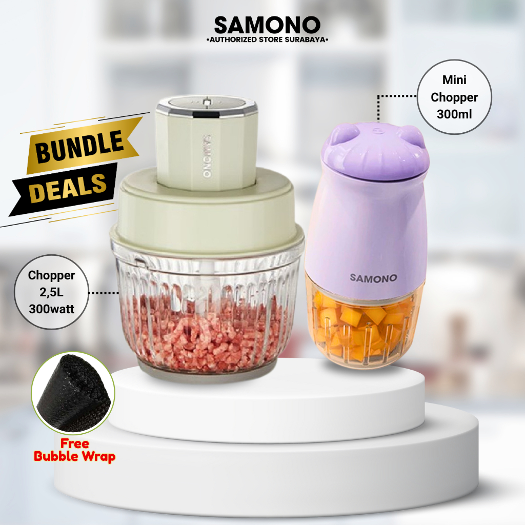 SAMONO Bundling Chopper 2,5L+ 300ml⠀⠀⠀⠀⠀⠀⠀⠀⠀⠀⠀⠀⠀⠀⠀⠀⠀⠀⠀⠀Hemat Food Chopper 2,5 Liter SW-CG350 dan Mini Food Chopper 300ml