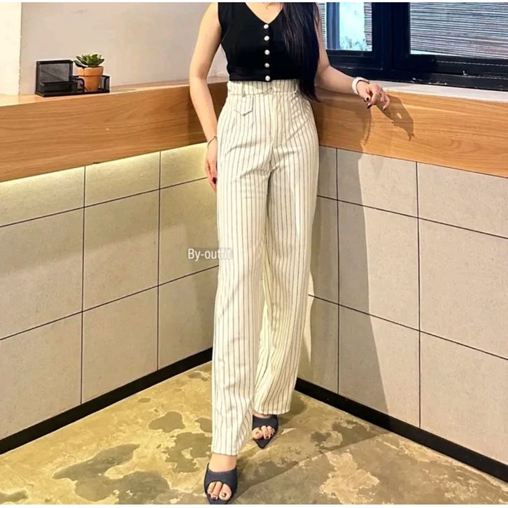 ORO Pants Oro Pants Stripe Celana Hightwaist Wanita