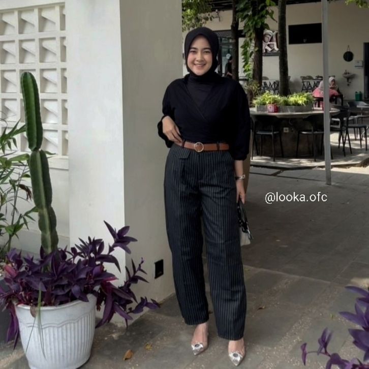 ORO Pants Oro Pants Stripe Celana Kulot Wanita Adem Viral Nyaman