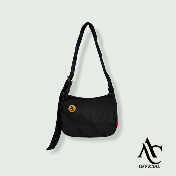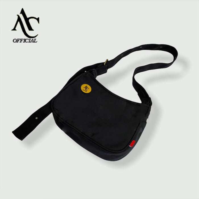TAS SELEMPANG BAHU CANVAS - SLINGBAG SHOULDERBAG BAG CANVAS VINTAGE CEWEK COWOK KANVAS KULIT WAISTBAG TAS SELEMPANG - HITAM