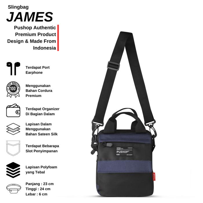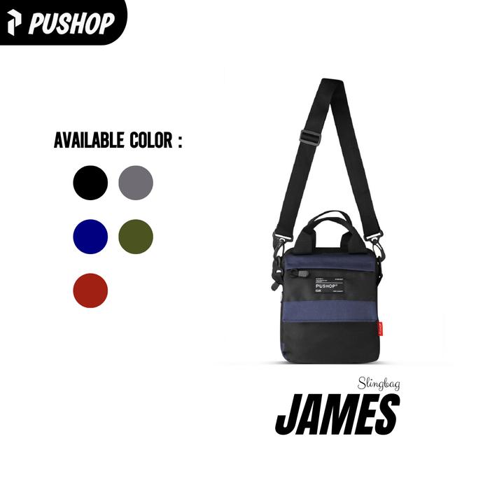 PUSHOP TAS SELEMPANG PRIA WANITA JAMES - SLINGBAG UNISEKS SLING BAG KASUAL KANVAS - HITAM