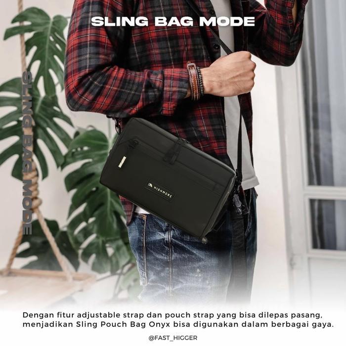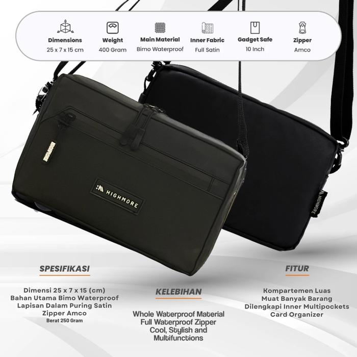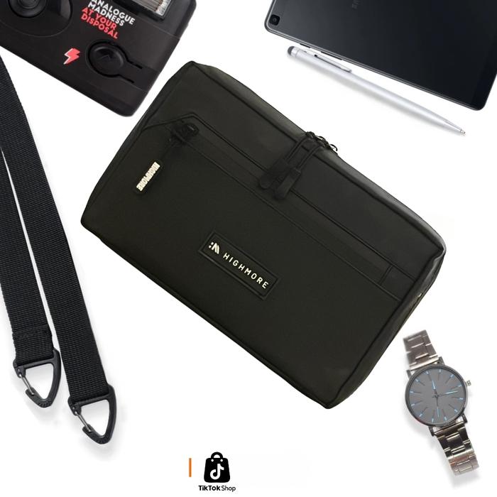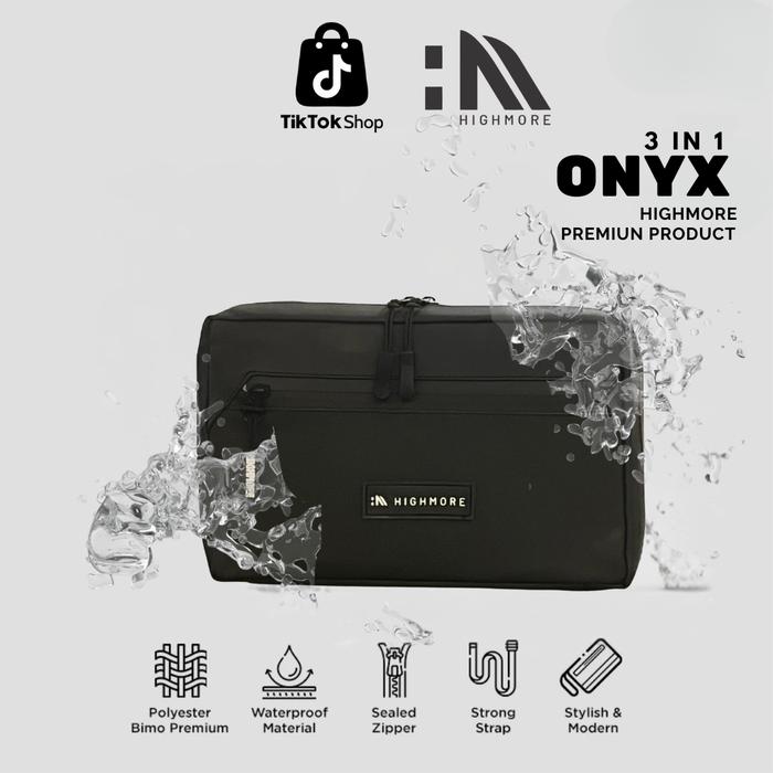 TAS SELEMPANG PRIA CLUCTH HIGHMORE ONYX 3IN1 HANDBAG WATERPROOF - SLINGBAG HITAM - WAISTBAG