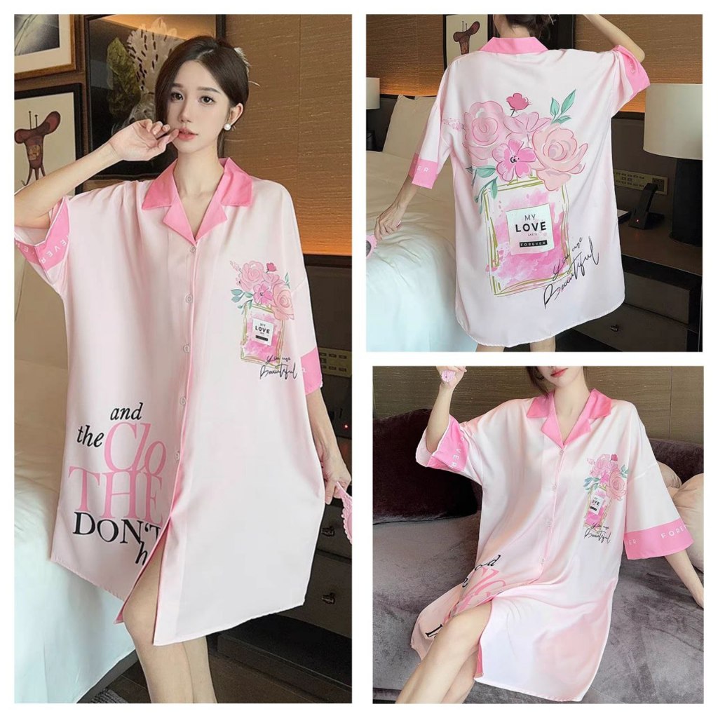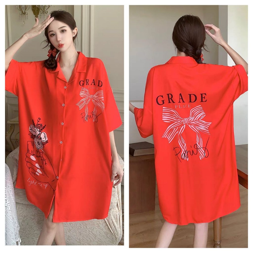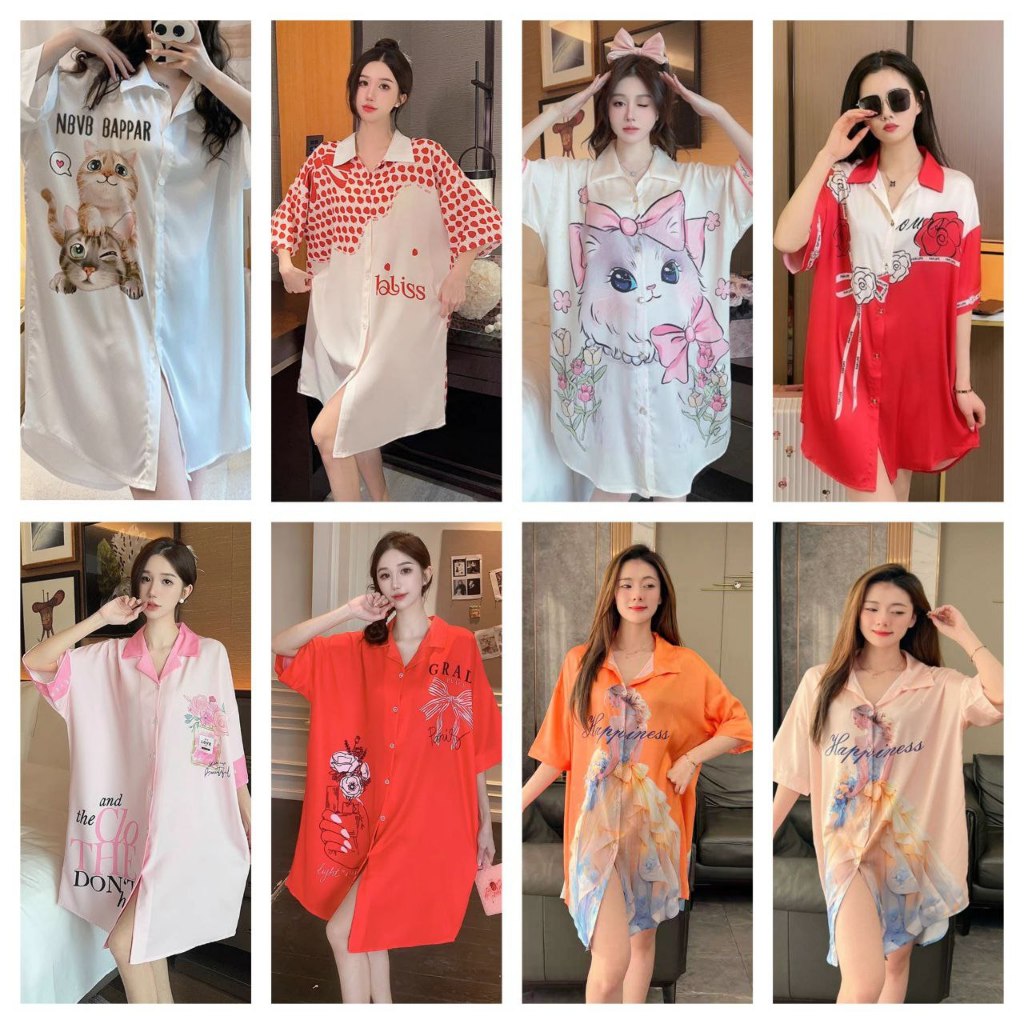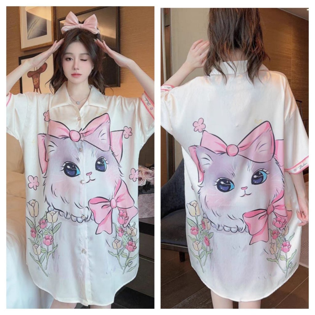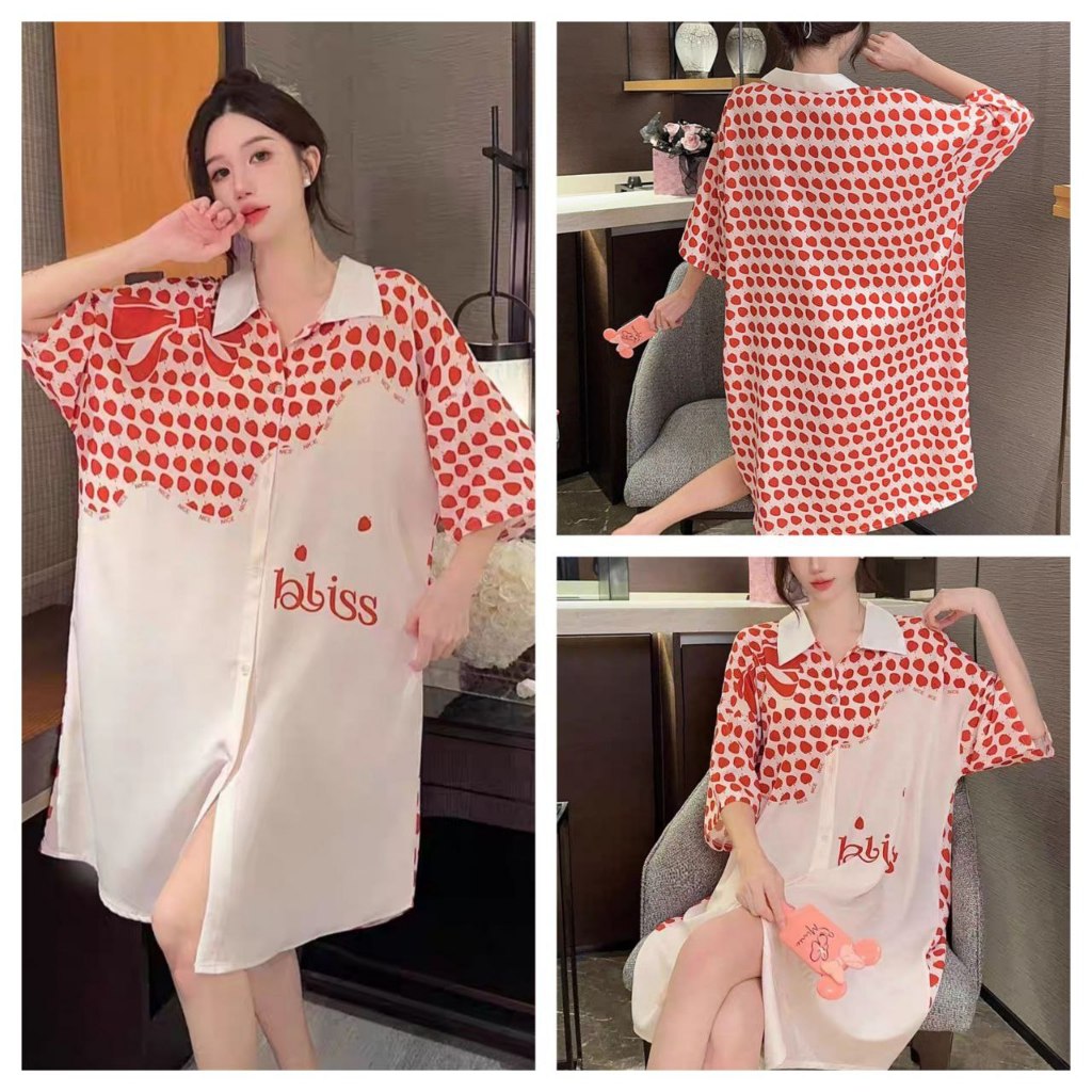 KEMEJA DASTER WANITA BERKERAH MOTIF KARAKTER LUCU - BAJU TIDUR NYAMAN & NIGHT DRESS SANTAI KEKINIAN