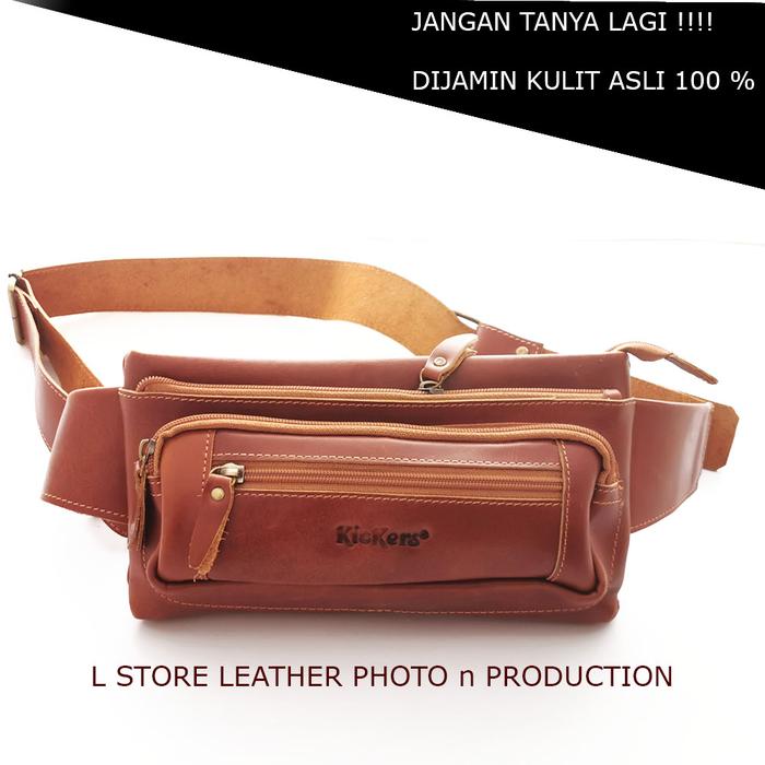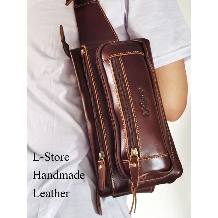 WAISTBAG KULIT PRIA BERGARANSI 100 PERSEN KULIT SAPI - COKLAT