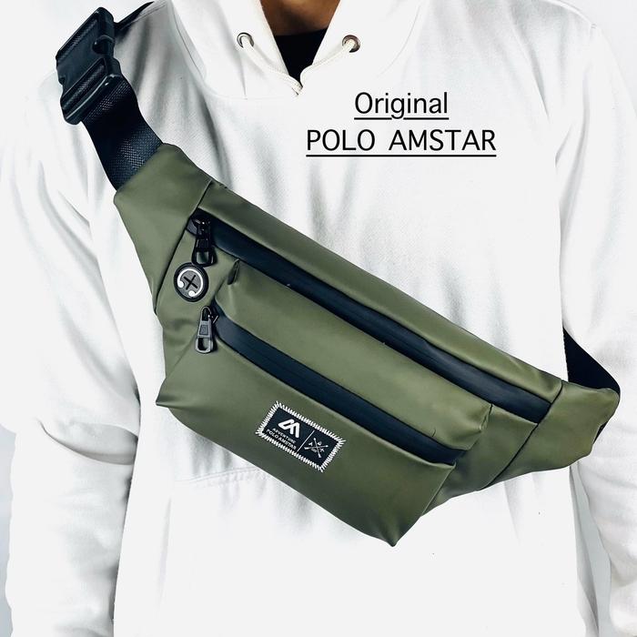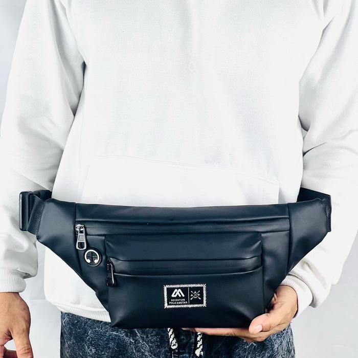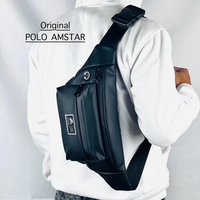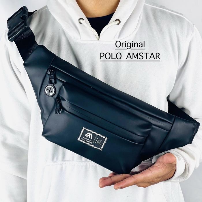 POLO AMSTAR TAS SELEMPANG WATERPROOF ANTI AIR PRIA WANITA SPORTY OUTDOOR WAISTBAG PREMIUM - HITAM