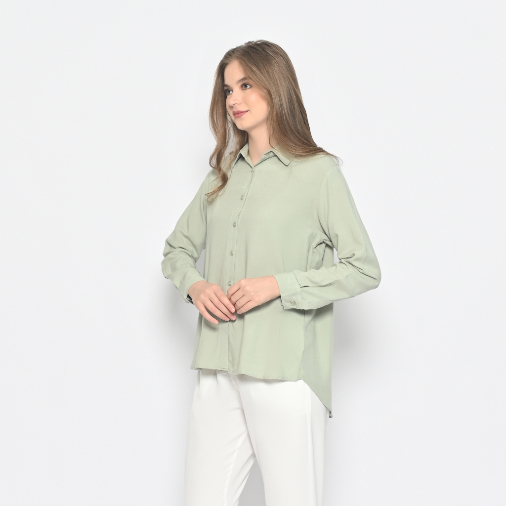 Kemeja Casual Wanita 0314 Katun Rayon Polos Premium Lengan Panjang