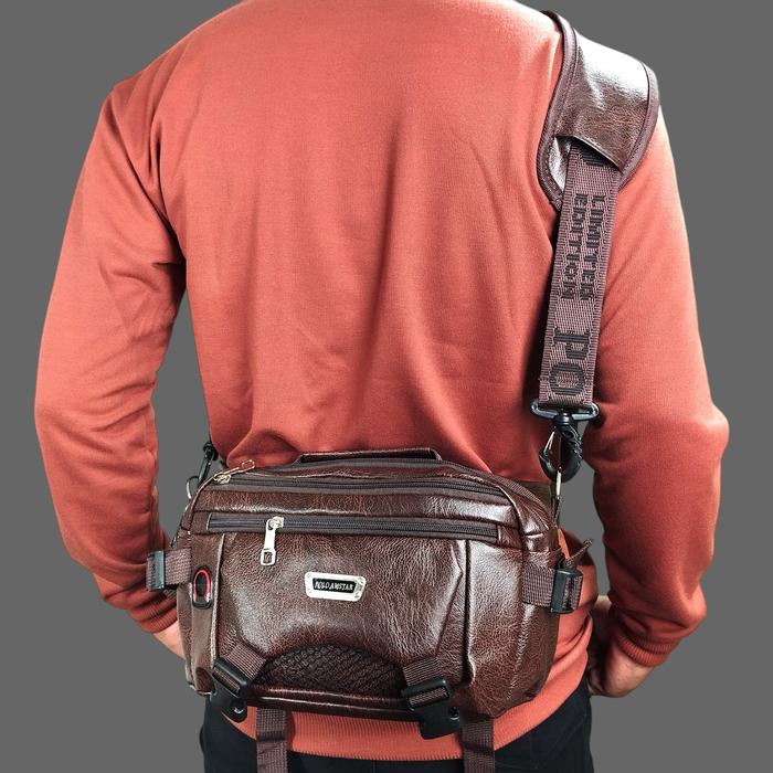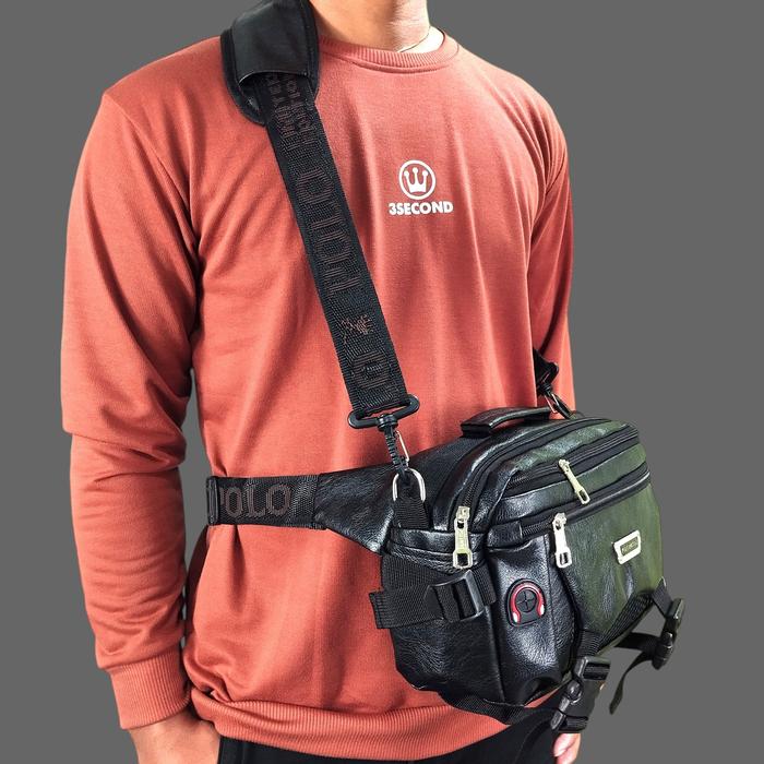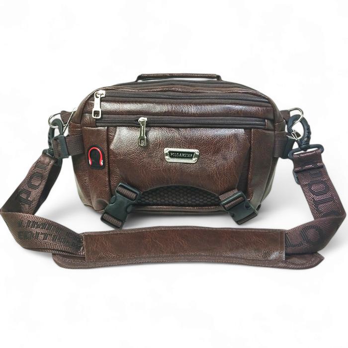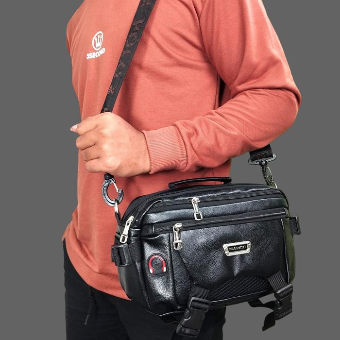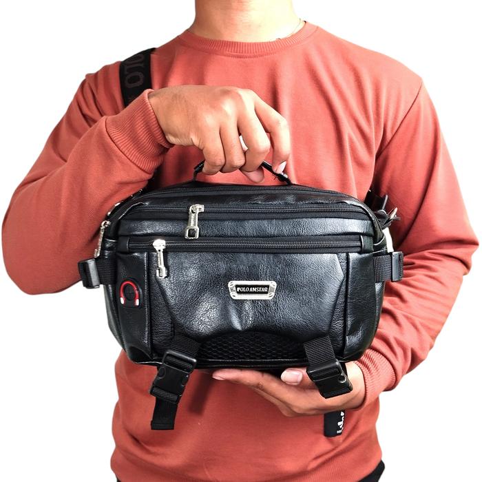 TAS SELEMPANG PRIA ANTI AIR KULIT SINTETIS KUALITAS TERBAIK POLO AMSTAR - PINGGANG WAISTBAG COWOK - SLINGBAG - HITAM