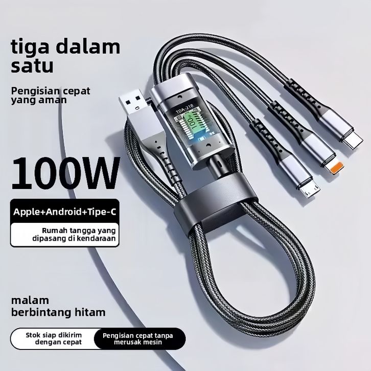 Kabel Data GUKOO 3IN1 Super Fast Charging 100W usb To Type C Lightning Micro with Digital Display