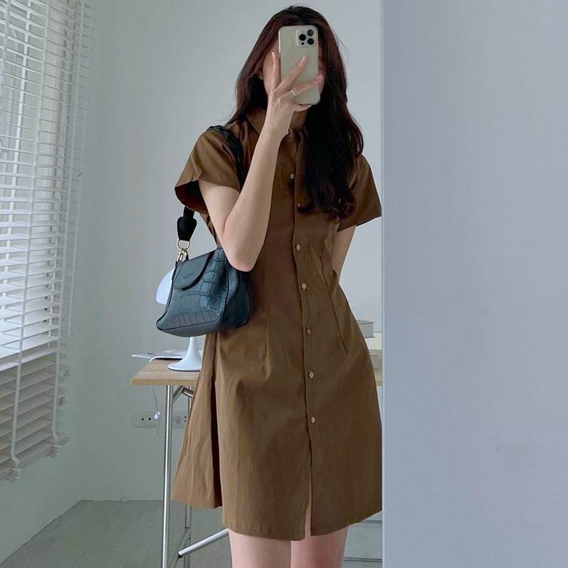 AJW DRESS KEMEJA COTTON RAYON BERKERAH KANCING FULL LENGAN PENDEK SBH | CASUAL DRESS MINI SHIRT KEMEJA FULL KANCING LENGAN PENDEK COTTON RAYON | MINI DRESS KEMEJA BERKERAH KANCING FULL LENGAN PENDEK