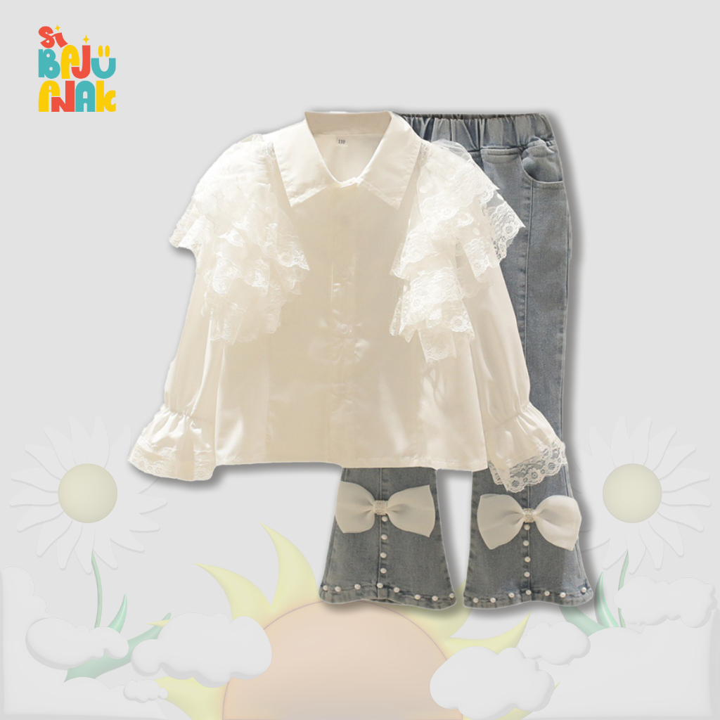 Setelan Anak Perempuan 1-7 Tahun Set Blouse Renda Celana Jeans CutBray - BAP-6