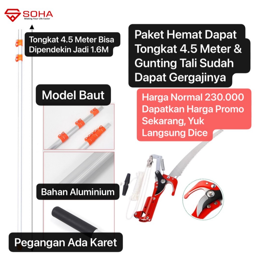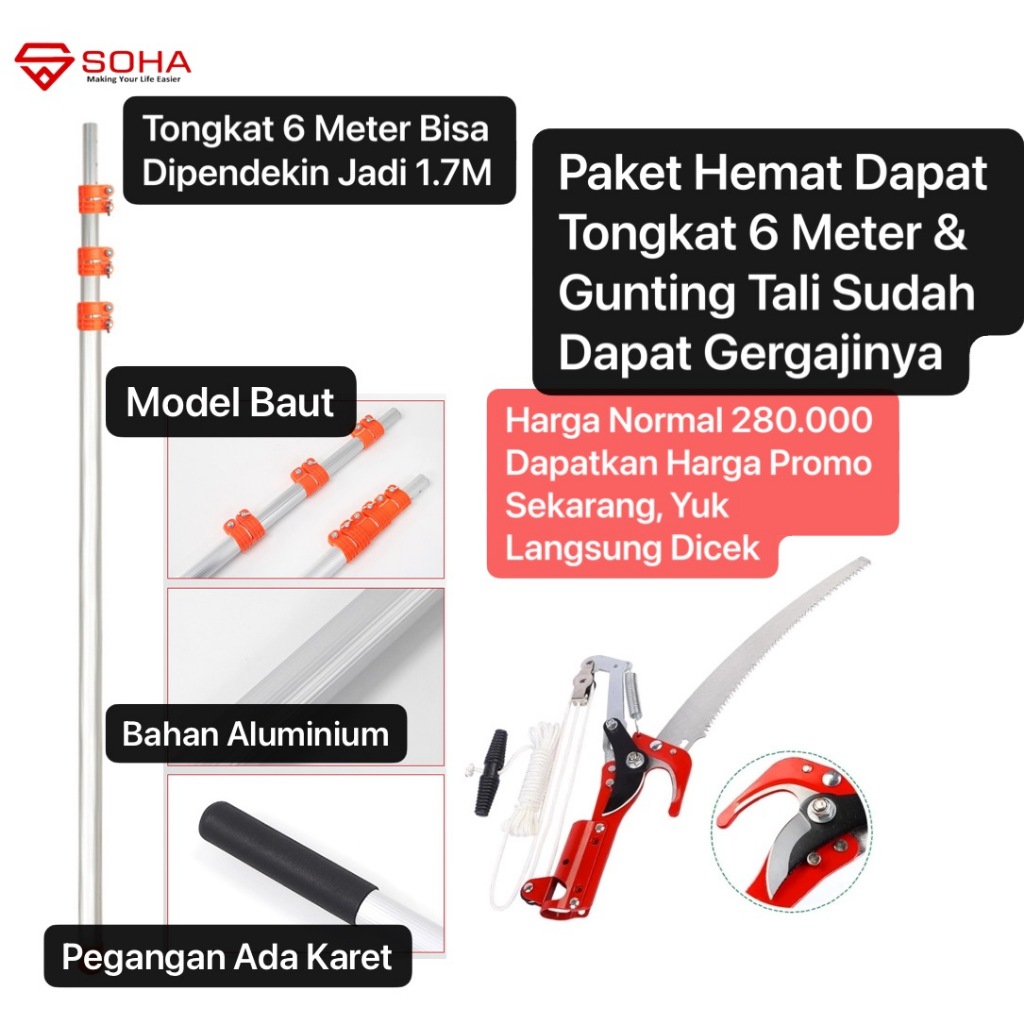 TONGKAT GALAH PANJANG DAPAT GUNTING ALAT PETIK BUAH DAN GERGAJI GERGAJI PEMOTONG DAHAN BUAH TREE PRUNER FRUIT PICKER