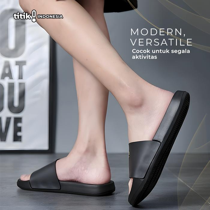 SANDAL POLOS TERBARU 2025 HITAM PRIA WANITA SLIP ON ANTI LICIN MODEL SELOP RINGAN DESTINY SENDAL SHOES KARET - DESTINY, 39