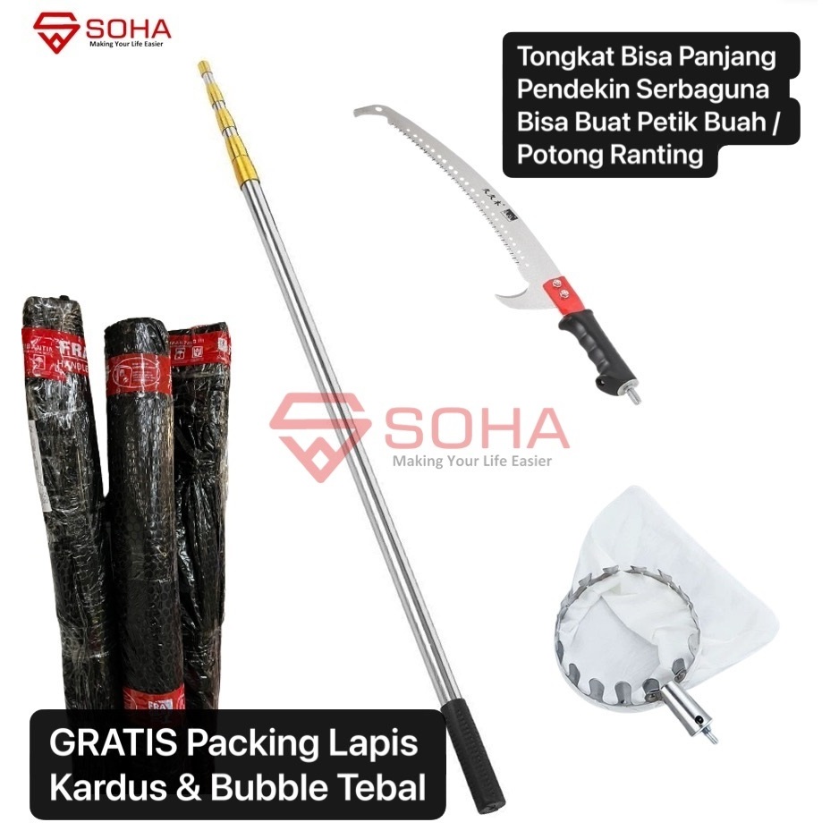 PCK-10 10 METER TONGKAT PETIK BUAH PANJANG TELESKOPIK METAL FRUIT PICKER BISA GERGAJI POTONG RANTING ALAT PEMETIK BUAH TONGKAT TINGGI STIK SERBAGUNA