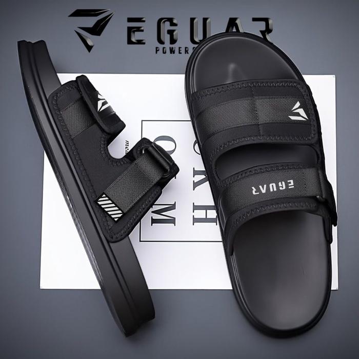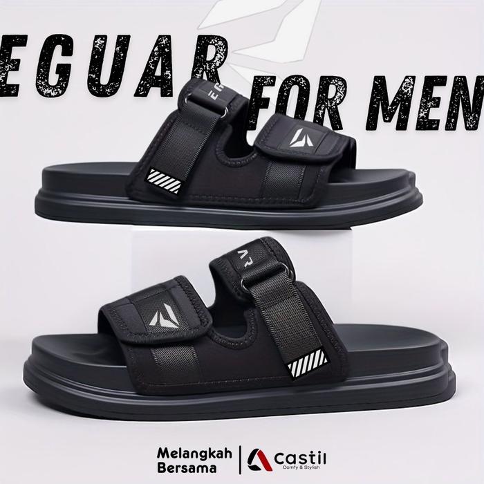 SANDAL SLOP PRIA TERBARU IMPORT BAHAN KARET ANTI SLIP EMPUK NYAMAN SANDAL COWOK SENDAL SLIP ON KASUAL - HITAM, 38