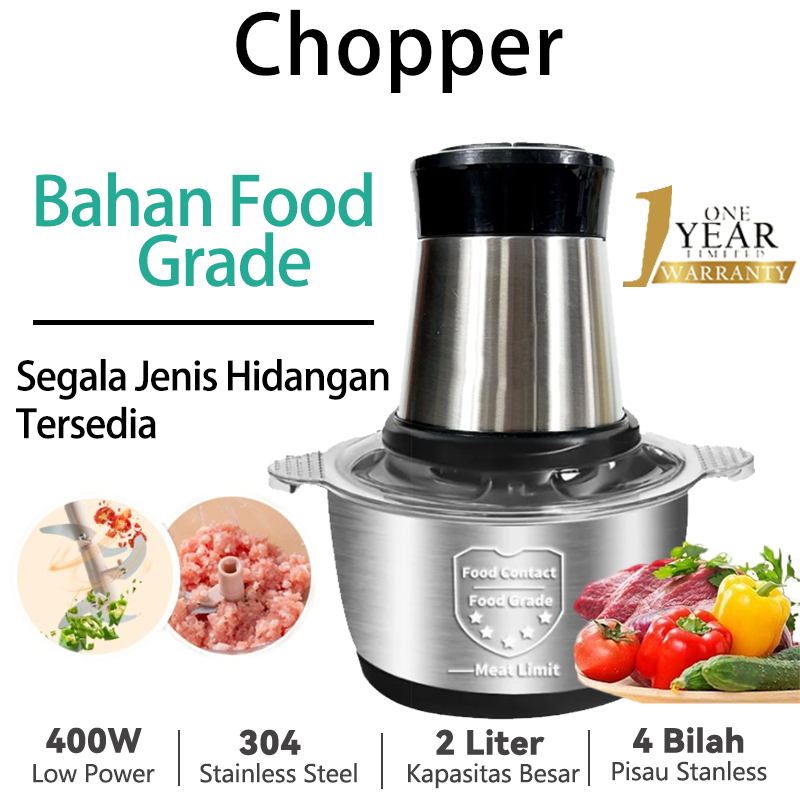 Chopper Blender Daging Penggiling Choper Bumbu Daging Sayur Buah 2 Liter Food Processor