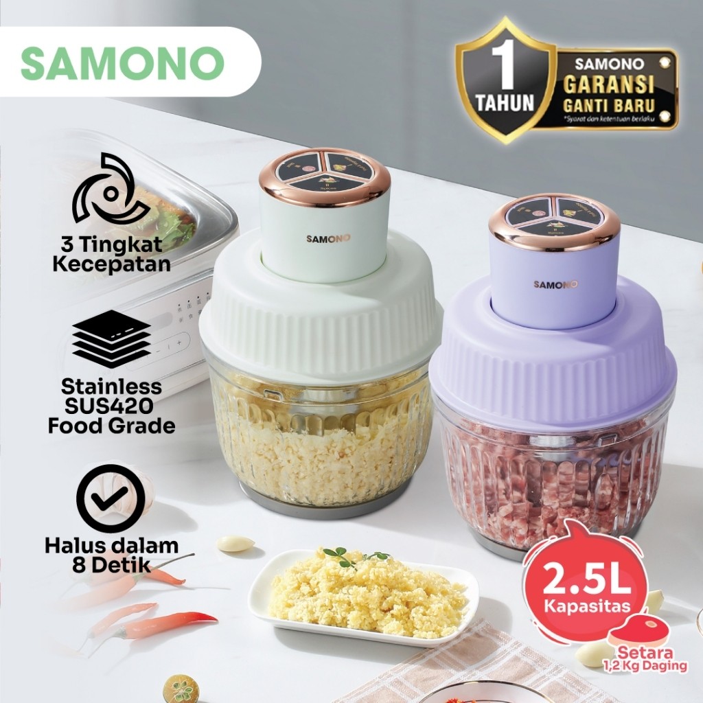 SAMONO Best Seller Chopper Low Watt Garansi Wadah Kaca Penghalus Daging Bumbu Buah MPASI Meat Grinder Food Processor Ble