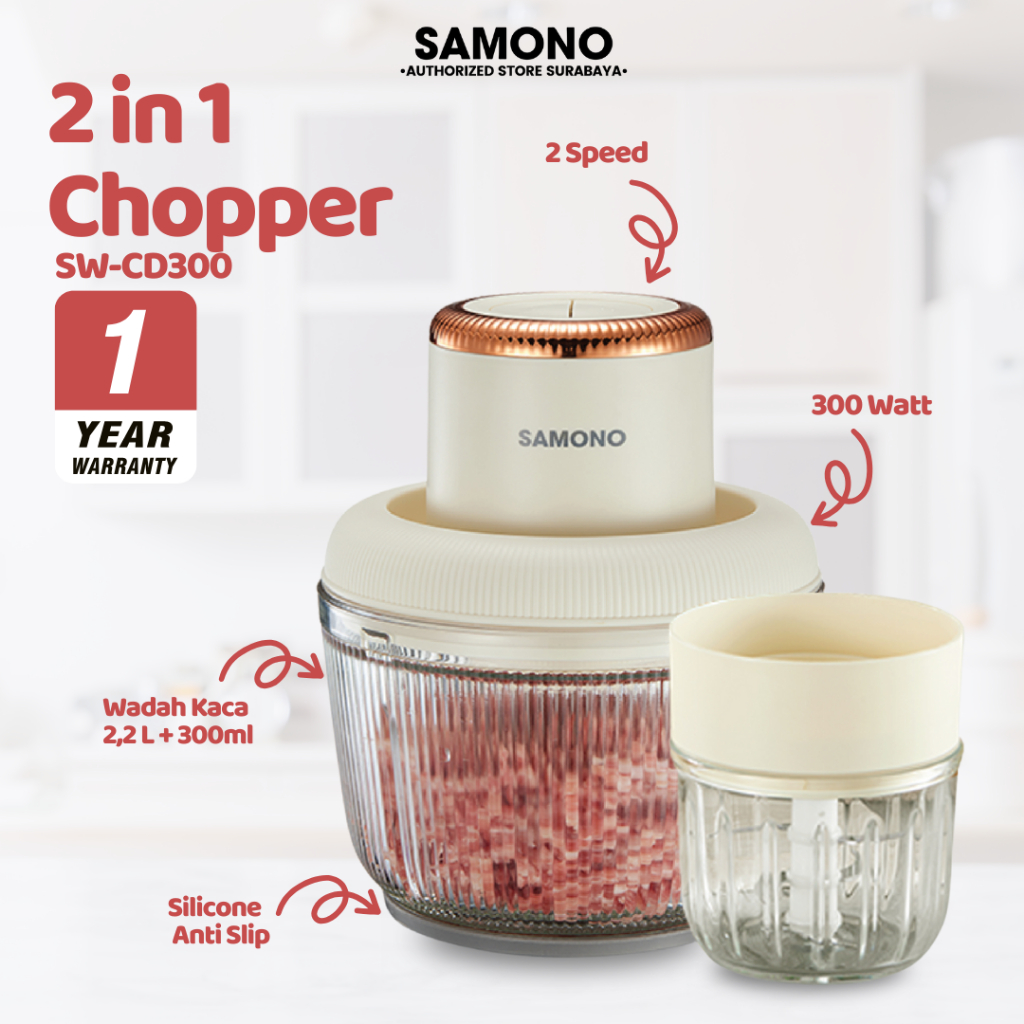 SAMONO Surabaya Store Food Chopper Multifungsi Low Watt 2,2 Liter dan 300ml | Wadah Kaca | MPASI | Food Processor | Peng