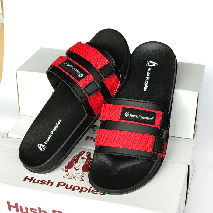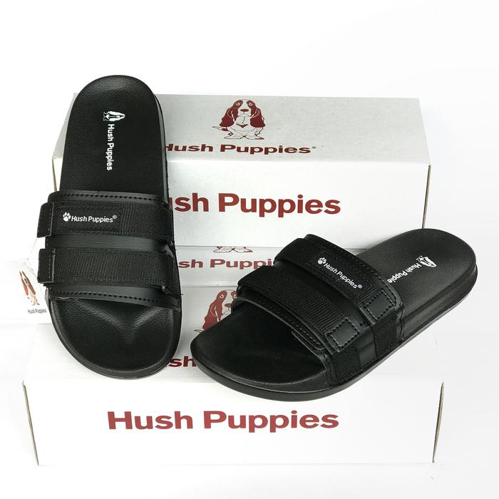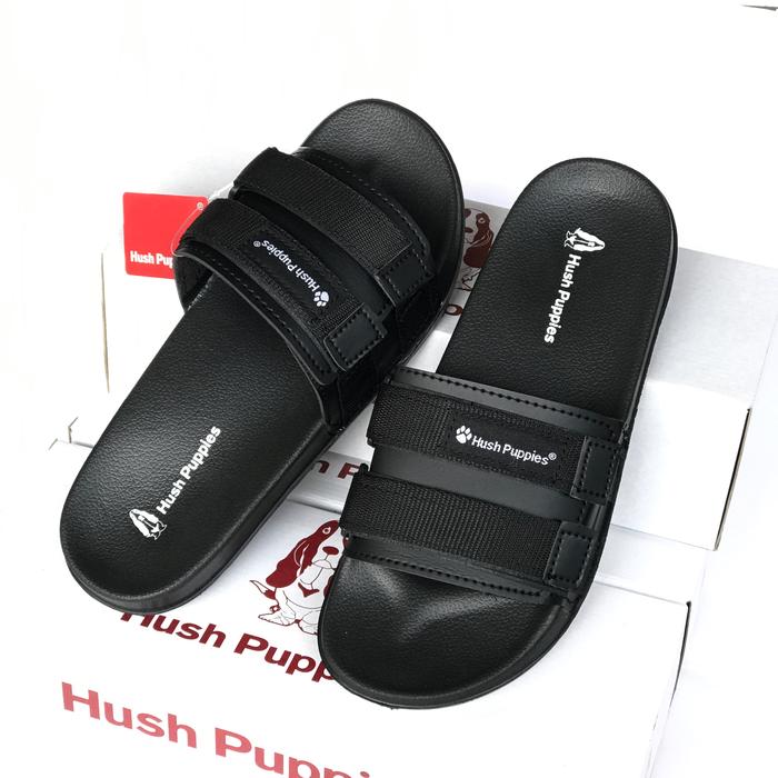 SANDAL SLIDE HUSH PUPPIES PRIA WANITA DOUBLE STRAP WEBBING BLACK - HITAM, 36