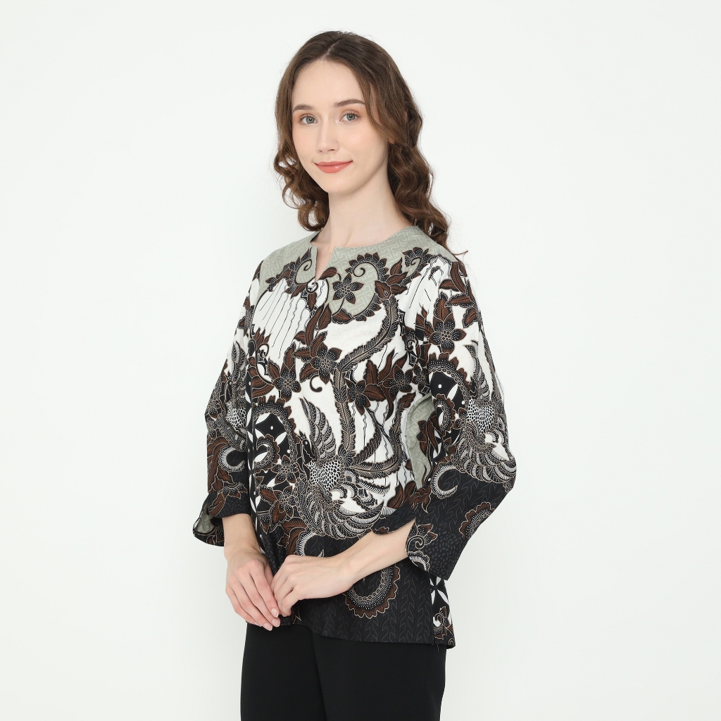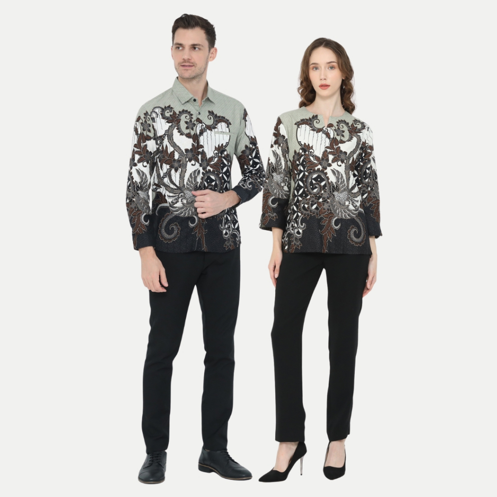 Batik Couple Atasan Batik Pria dan Wanita Abu OLR293