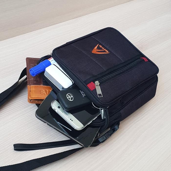 METRIC TAS PRIA TAS SELEMPANG PRIA TAS GADGET BAHAN KANVAS 8 IN BLACK - HITAM