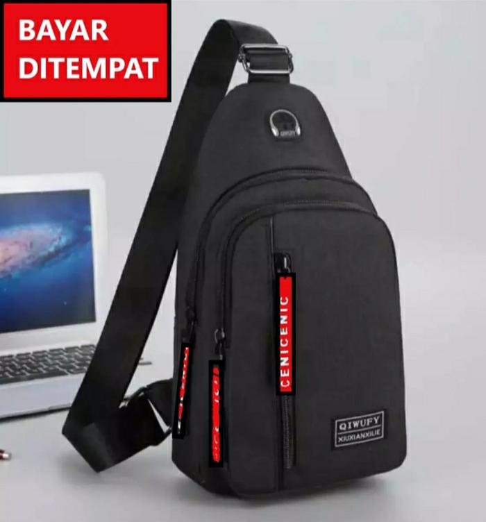 TAS SELEMPANG PRIA QIUPY TERMURAH 2023 HITAM CO - HITAM