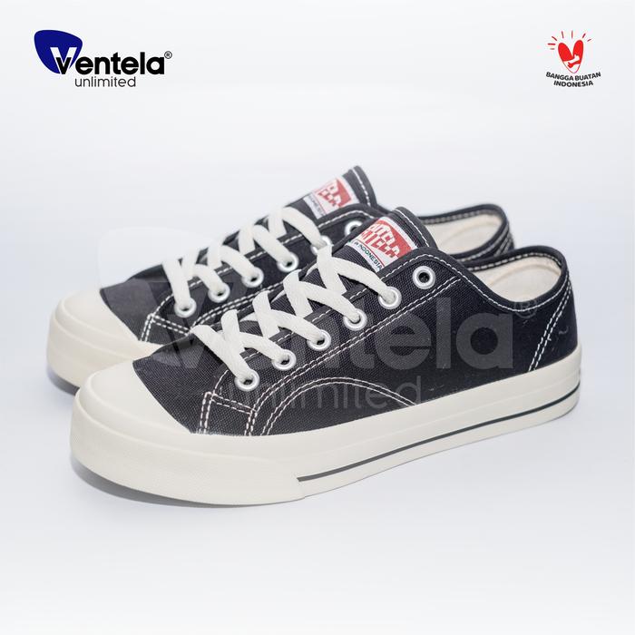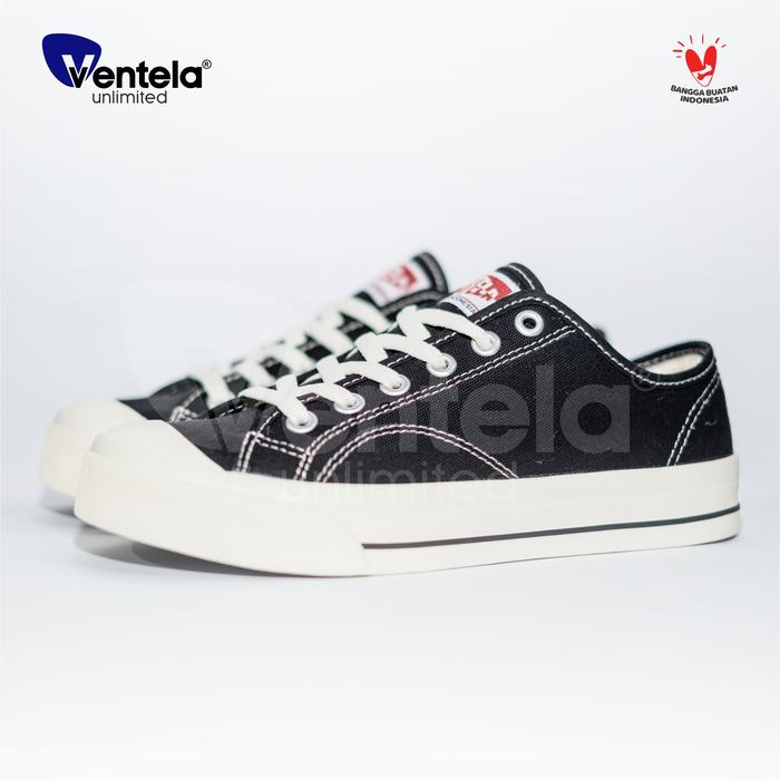 VENTELA BASIC LOW BLACK SNEAKERS PRIA SEPATU COWOK KEREN COCOK UNTUK SEKOLAH CANVAS CASUAL SHOES - BASIC BLACKNAT LOW, 33 JUNIOR