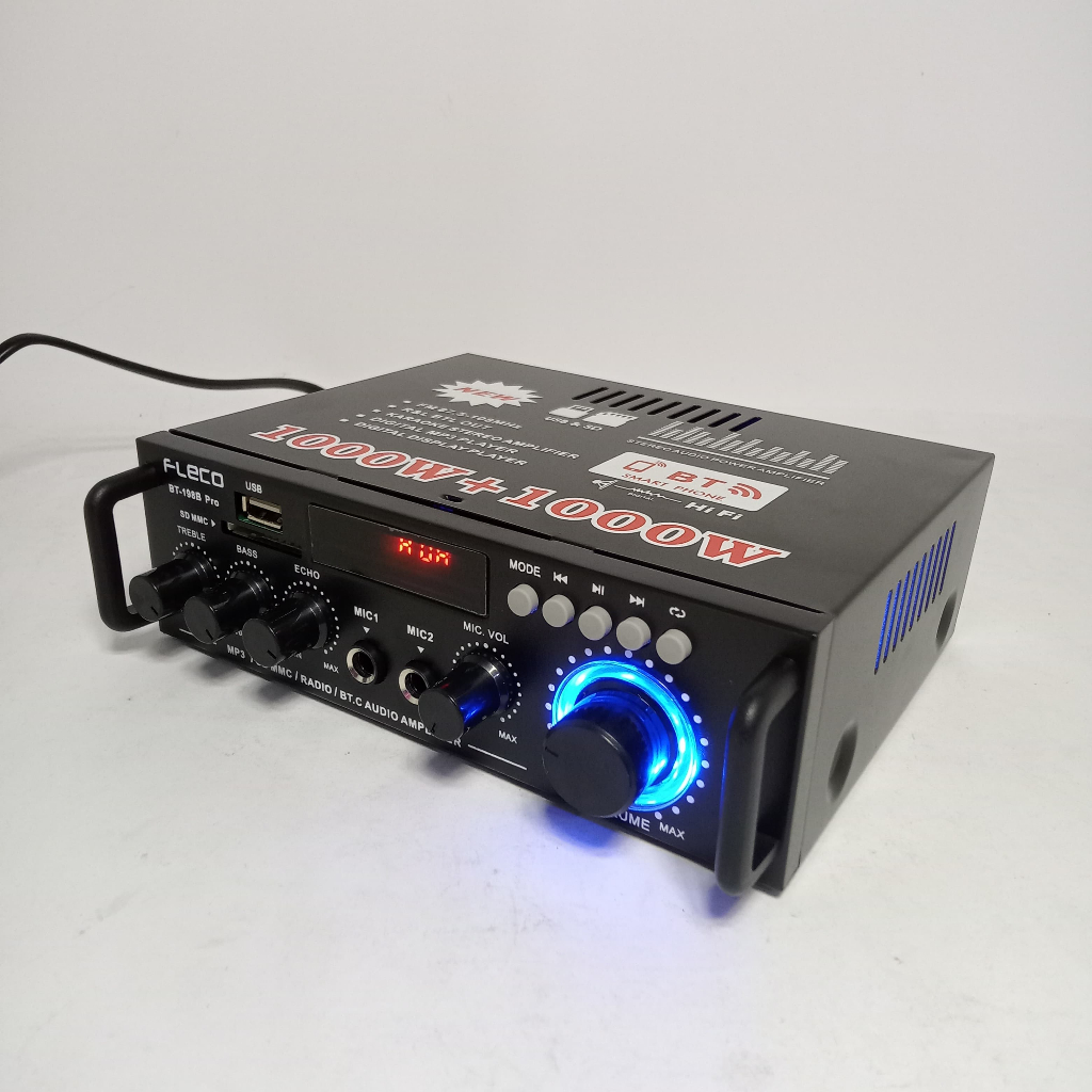 AMPLIFIER BLUETOOTH SUBWOOFER / AMPLI FLECO BT-198B PRO 2000W BISA BASS TREBEL BLUETOOTH INPUT 2 MIC +ECHO SD/MMC CARD +