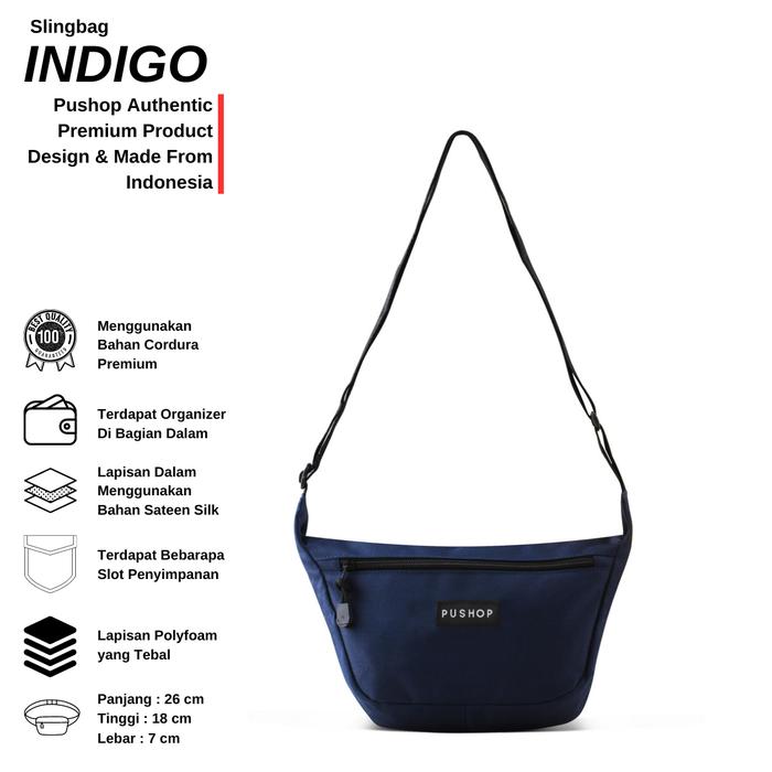 PUSHOP TAS SELEMPANG PRIA WANITA INDIGO - SLINGBAG UNISEKS SLING BAG KASUAL KANVAS - HITAM