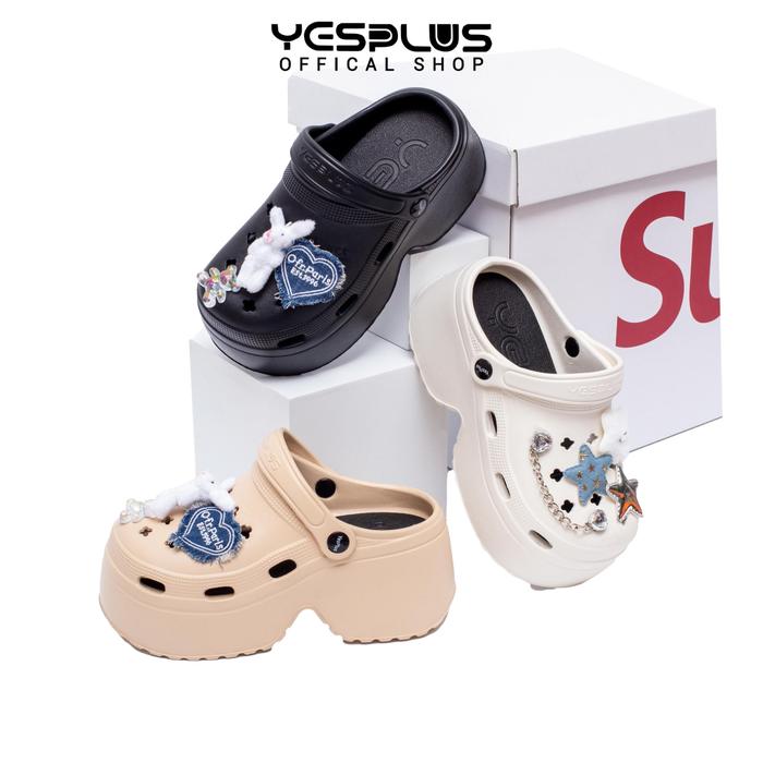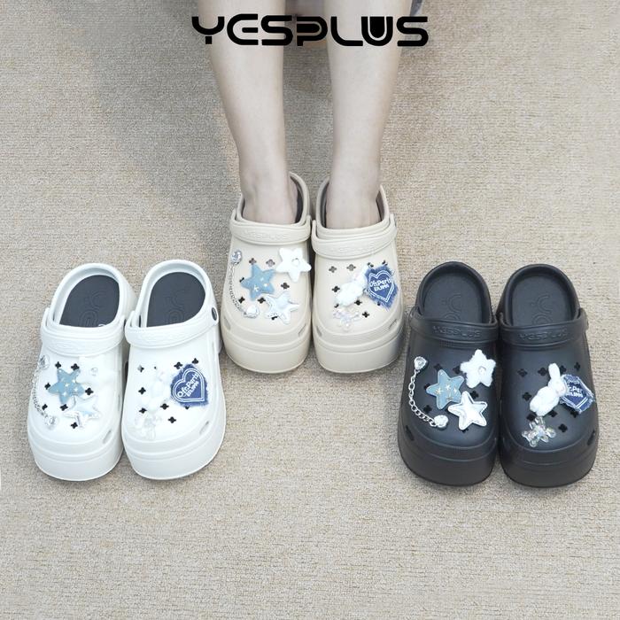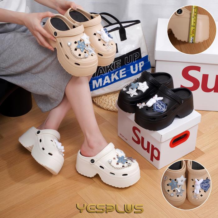 [YESPLUS] 8899-9 SANDAL BAIM WANITA IMPORT PREMIUM KETINGGIAN 9 CM DENGAN JIBBITZ RABBITS - PUTIH , 40/41