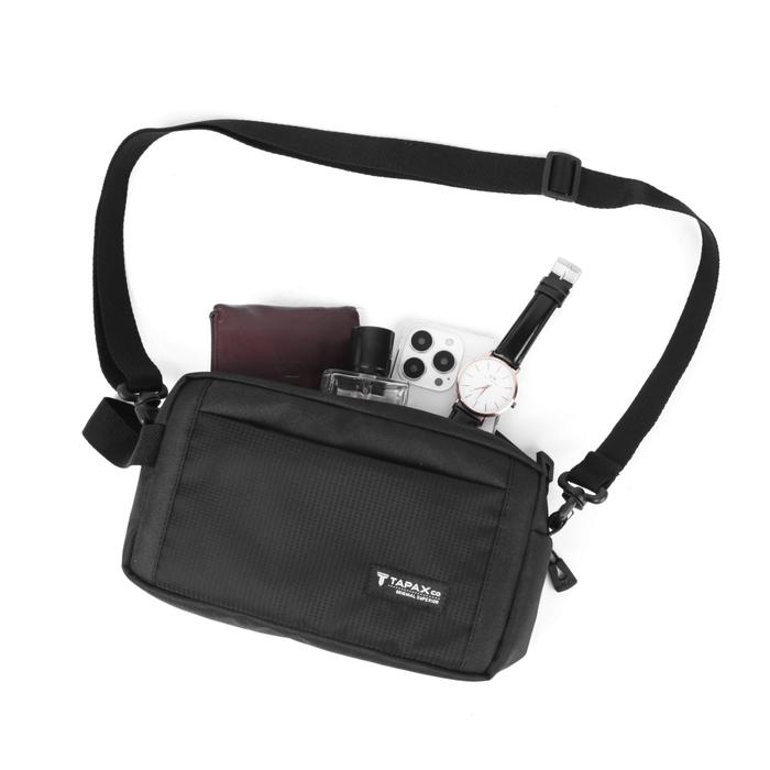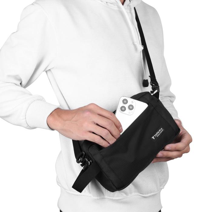 [BELI LOKAL] TAPAXCO TAS SELEMPANG DHAKA SLINGBAG POUCHBAG HANDBAG 3IN1 CASUAL LOCAL ORIGINAL PRIA WAISTBAG - FULL HITAM