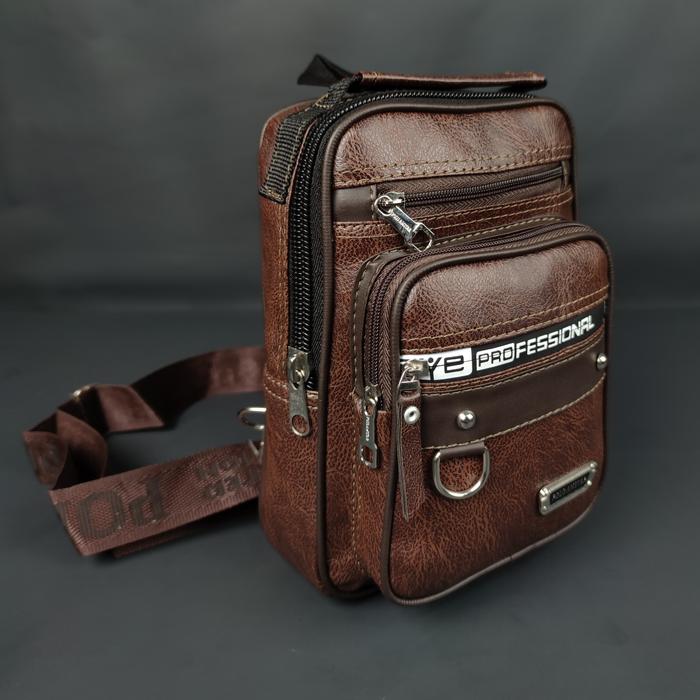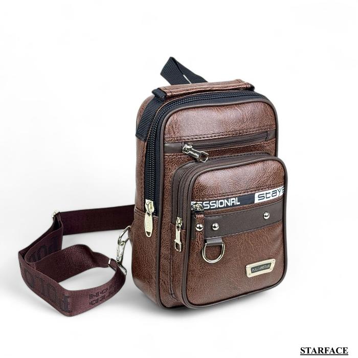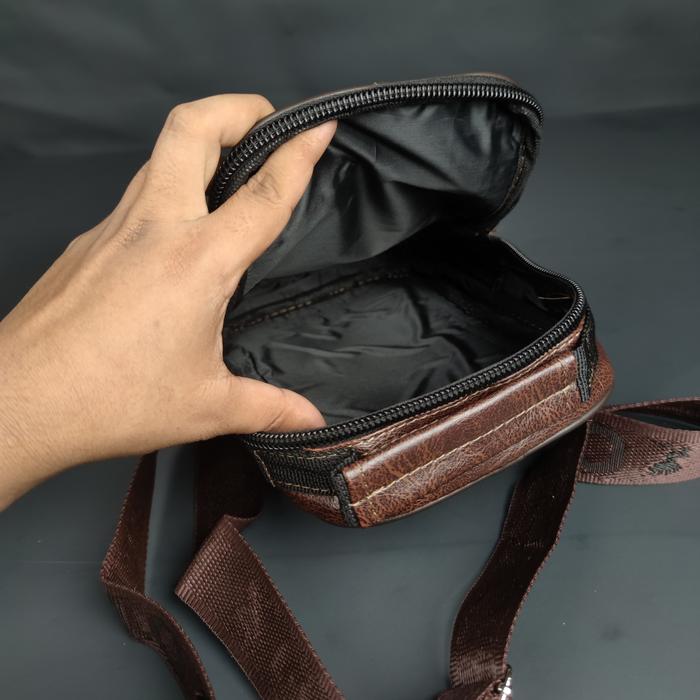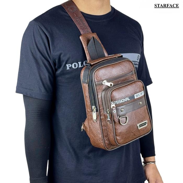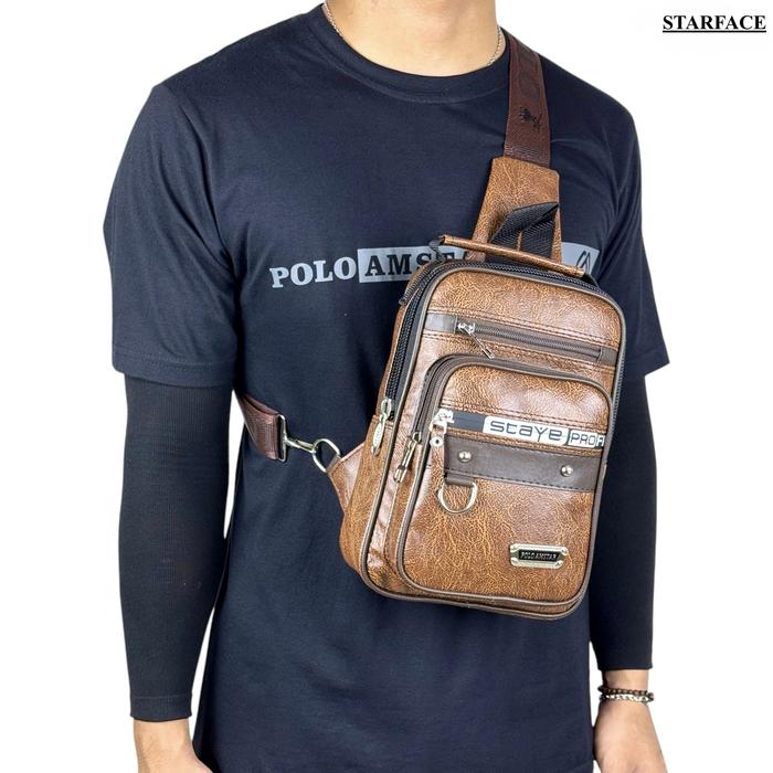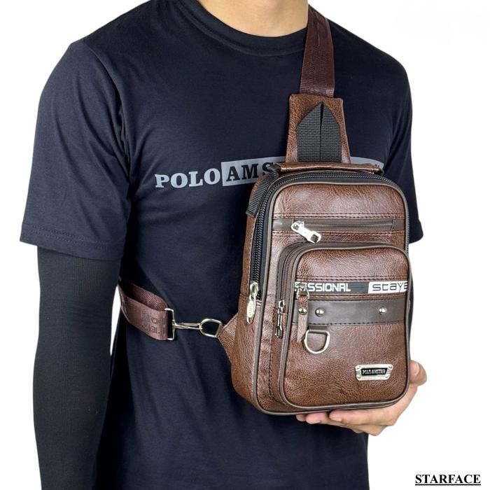 SLINGBAG TAS SELEMPANG PRIA BAHU BAHAN KULIT PU POLO AMSTAR TAS PUNDAK DEWASA - HITAM