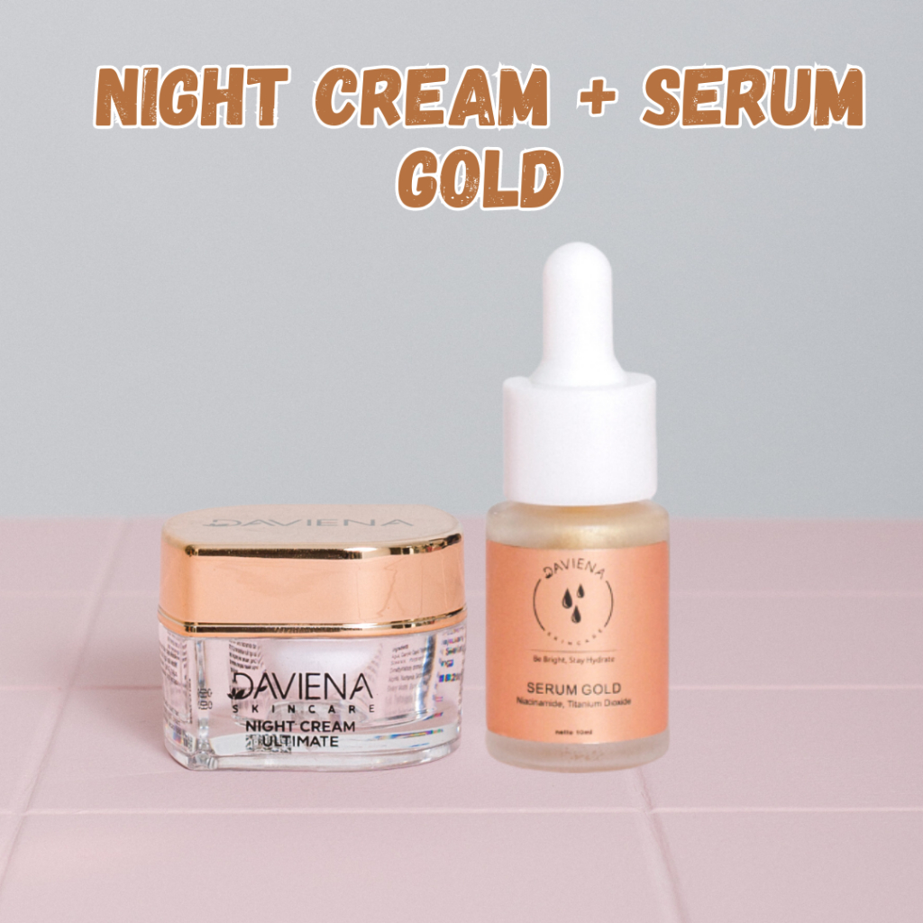 PAKET DUO GOLD SERIES | NIGHT CREAM DAN SERUM GOLD | DAVIENA SKINCARE | PAKET SKINCARE | SKIN CARE 1 SET KOMPLIT