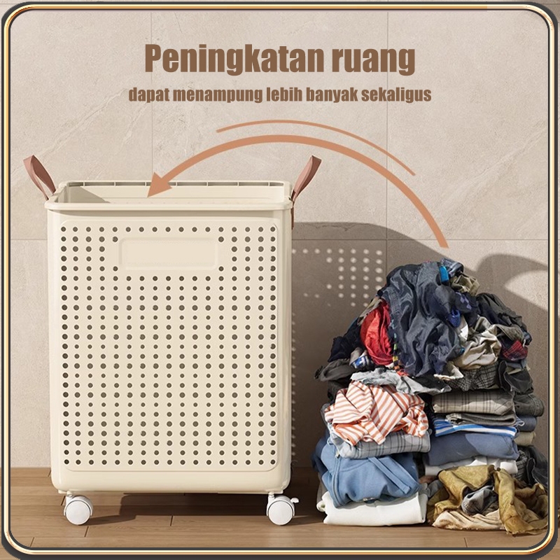 Kosong Baju Cuci Lipat Berroda - Folding Laundry Basket dengan Roda untuk Kamar Tidur