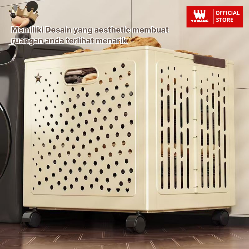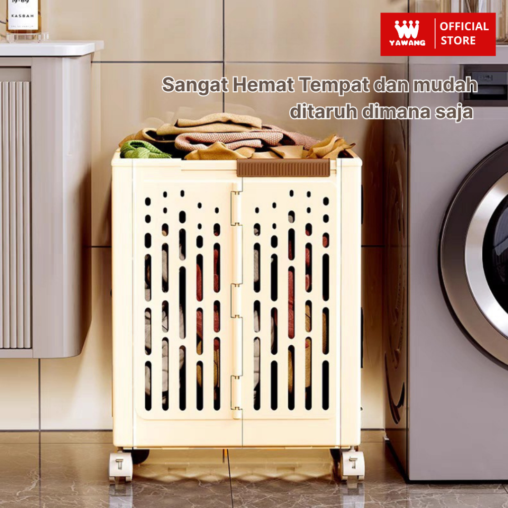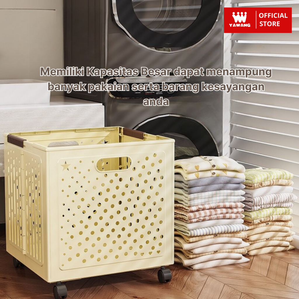 YAWANG Indonesia Keranjang Baju Kotor Lipat Laundry Box Keranjang Lipat Plastik dengan Roda Serbaa Keranjang Penyimpanan