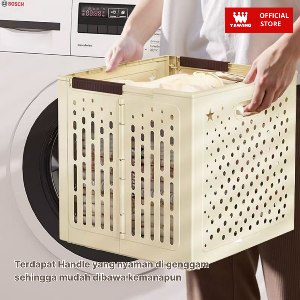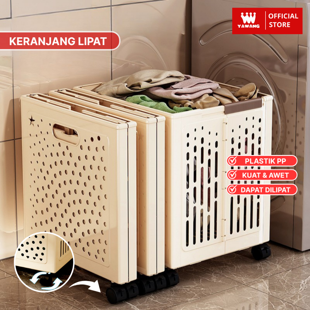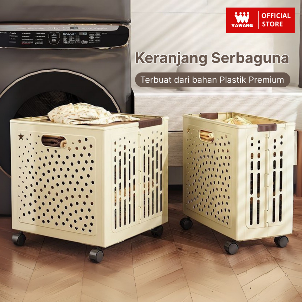 YAWANG Indonesia Keranjang Baju Kotor Lipat Laundry Box Keranjang Lipat Plastik dengan Roda Serbaa Keranjang Penyimpanan