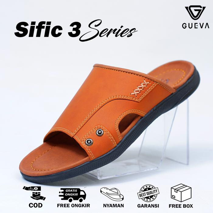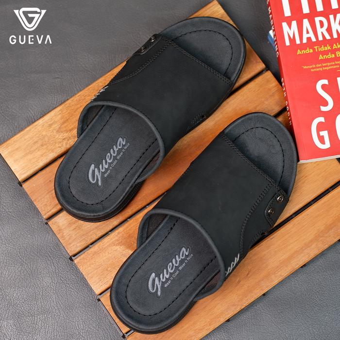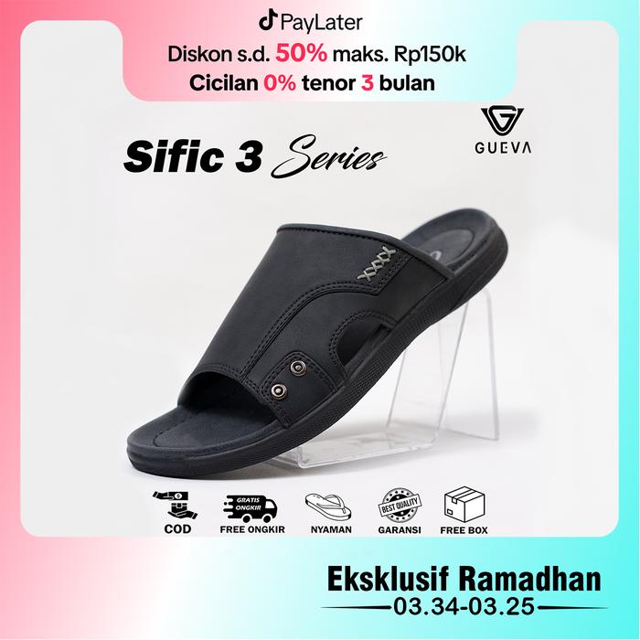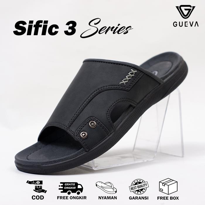 GUEVA SANDAL PRIA SIFIC 03 SERIES SENDAL SELOP SATU KASUAL INDOOR OUTDOOR SIZE 39-44 BISA SOL KARET ANTI SLIP ANTI LICIN - HITAM, 39
