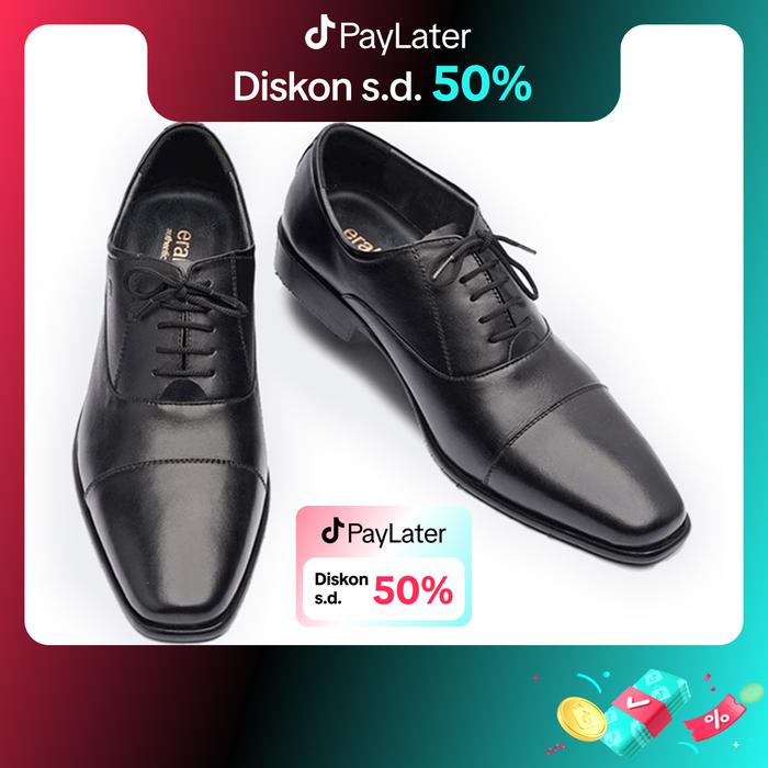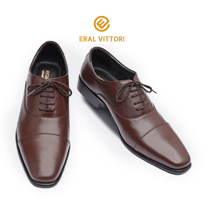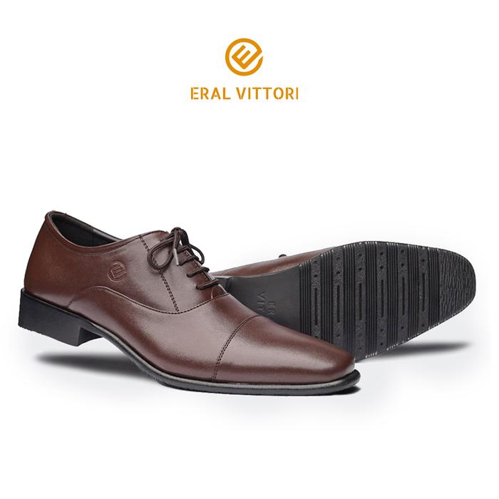 ERAL VITTORI : ERSTEP 7002 SEPATU PRIA PANTOFEL FORMAL KULIT ASLI KERJA KANTORAN PESTA WISUDA HITAM COKLAT SHOES - HITAM, NO 38