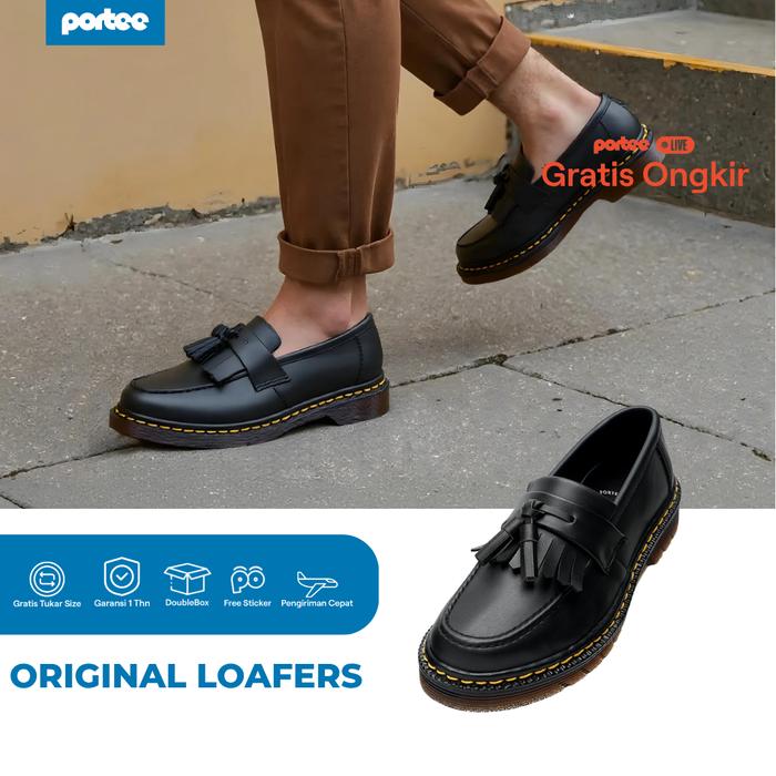 SEPATU PANTOFEL PORTEE ORIGINAL LOAFERS PRIA HITAM – SLIP-ON FORMAL NYAMAN | KERJA KULIAH UNDANGAN SHOES FLAT - 38(MEN)