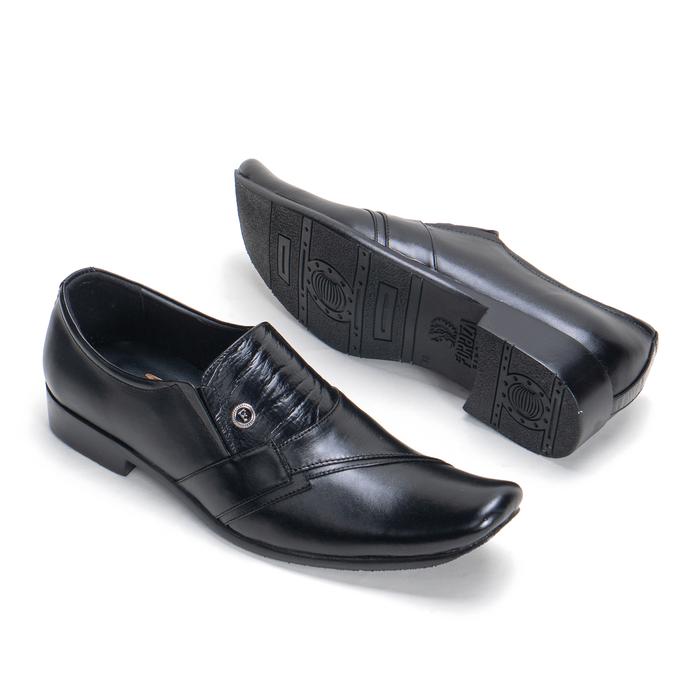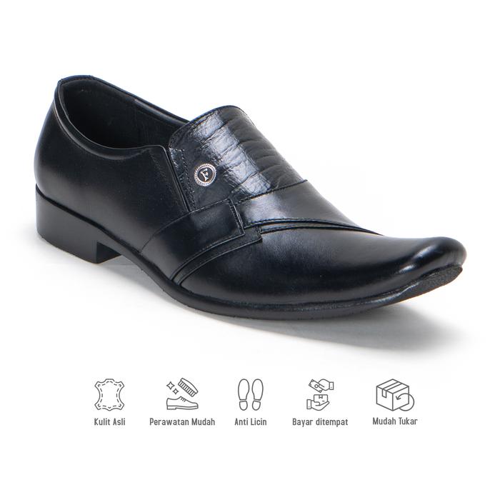 SEPATU PANTOFEL PRIA FORMAL KERJA KULIT ASLI MODEL 076HT - HITAM, 38