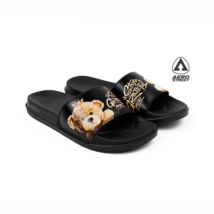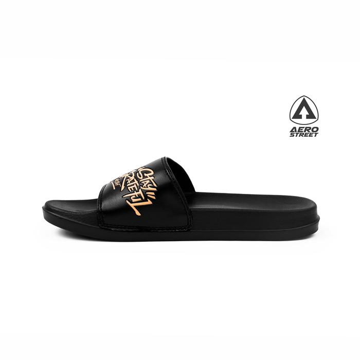 AEROSTREET 36-41 GRATEFUL FULL BLACK - SANDAL SENDAL SELOP SLIP ON CASUAL PRIA WANITA AERO STREET BAAAA - BLACK, 36