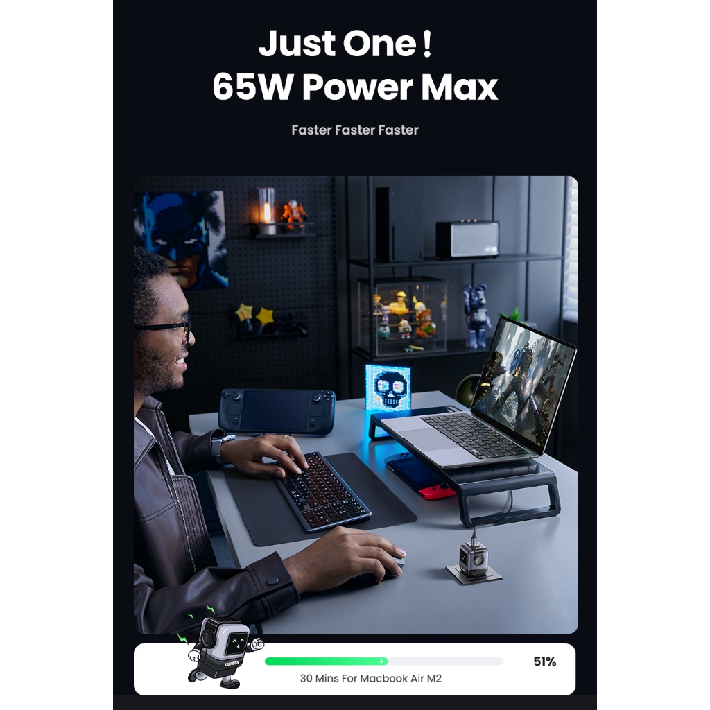 UGREEN Wall Charger Adapter USB Type C USB A Nexode Robot PD Fast Charging 65W