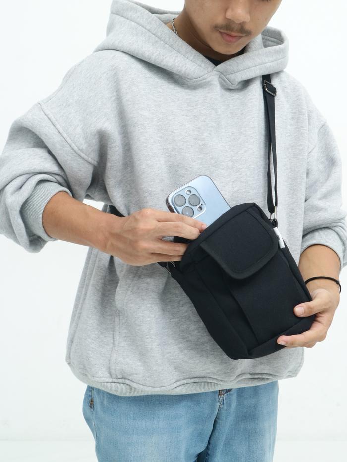 THECLUB TAS KANVAS SELEMPANG COWOK - MINI SLINGBAG CANVAS PRIA - BLACK