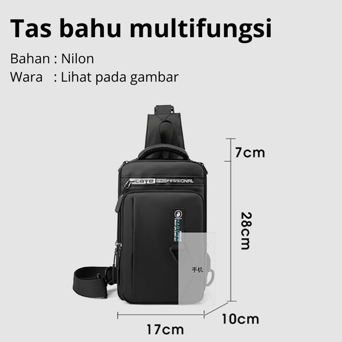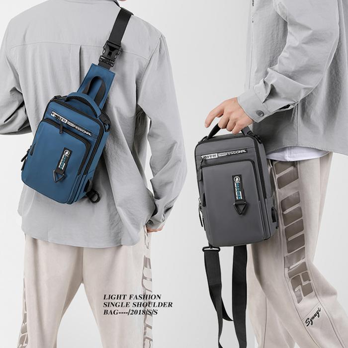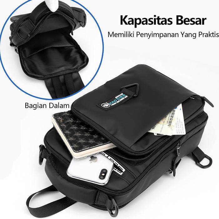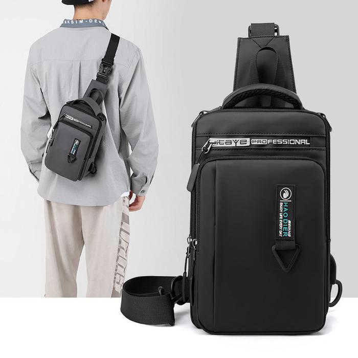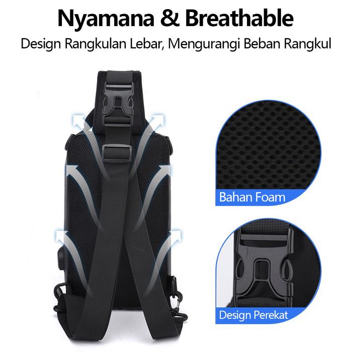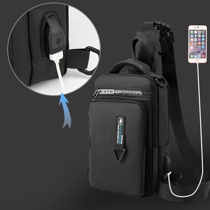 TECHDOO TAS SELEMPANG PRIA USB CHARGE SLINGBAG CROSSBODY OUTDOOR TS716 - HITAM