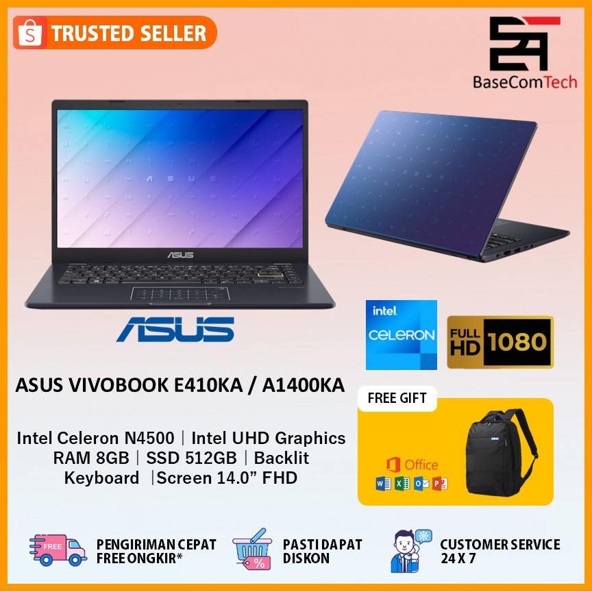 LAPTOP ASUS VIVOBOOK E410KA & A1400KA INTEL N4500 8GB 512GB SSD W11 + OHS 14 INCHI FHD