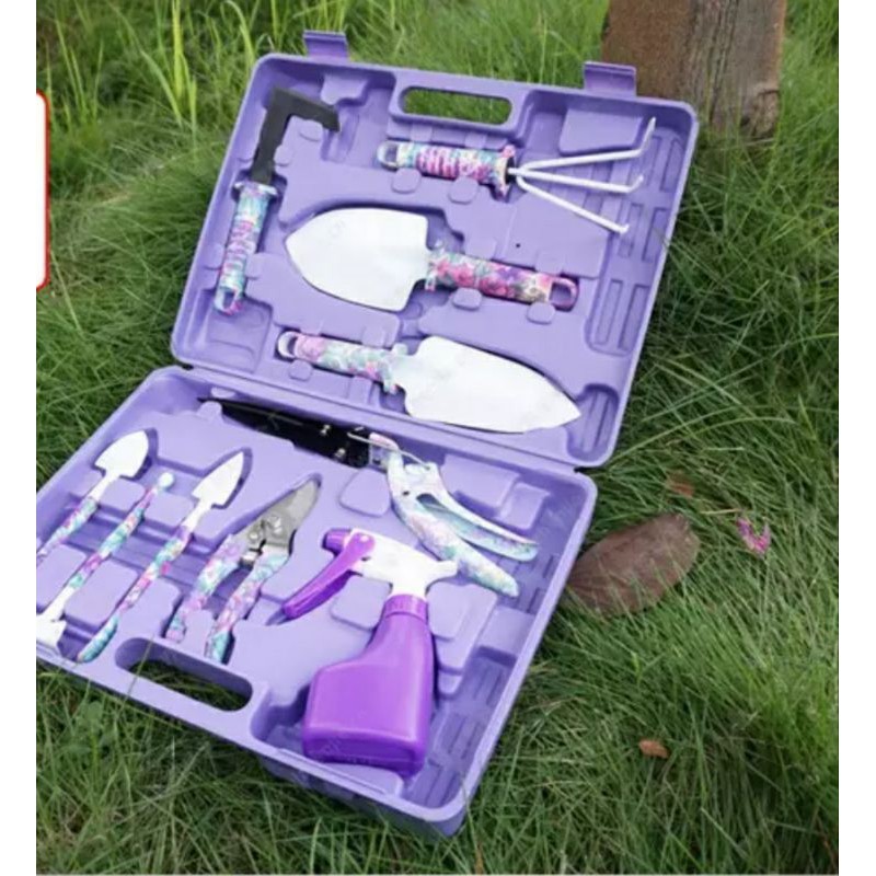 SET GARDENING ALAT BERKEBUN ISI 10 PCS WARNA UNGU MOTIF GARPU KEBUN GUNTING TANAMAN SEKOP BERKEBUN