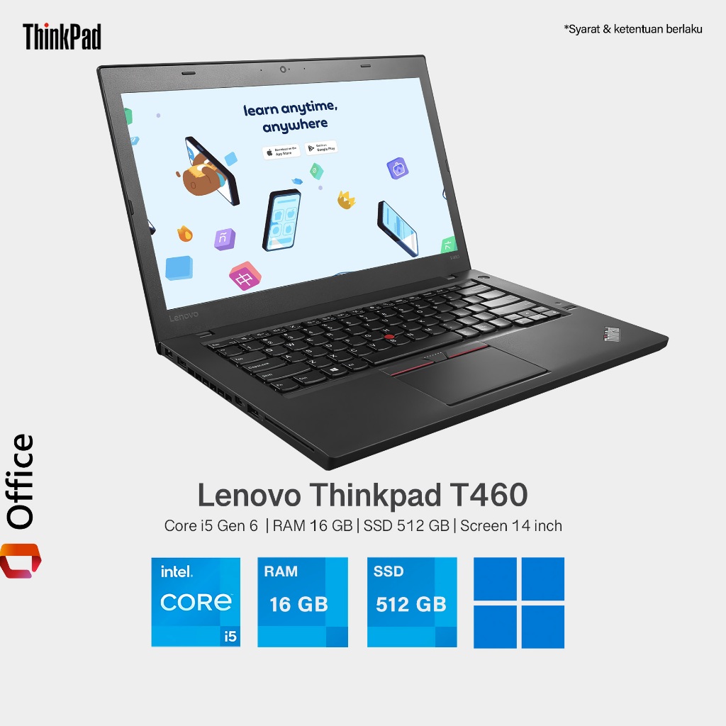LAPTOP LENOVO T460 CORE I5 GEN 6 RAM 16 GB SSD 512 GB LAYAR 14 INCH
