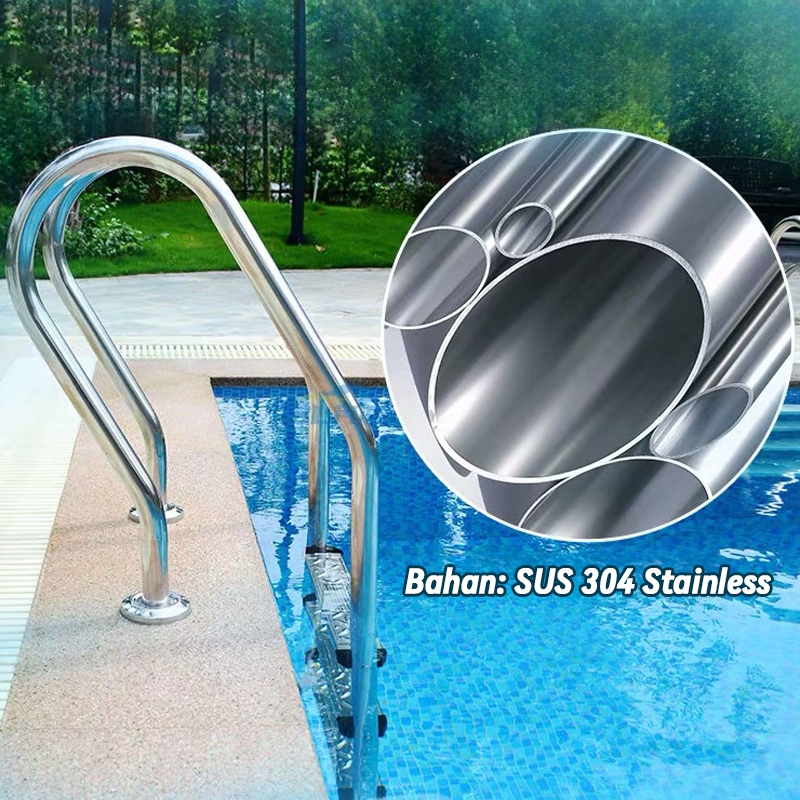 ⚡&GARANSI ⚡PEGANGAN TANGAN KOLAM RENANG/TANGGA STAINLESS KOLAM RENANG /TANGGA TAMAN AIR 3/2 TRAP MODEL U SUS 304 POOL LADDER/ 1.5 INCH RALL