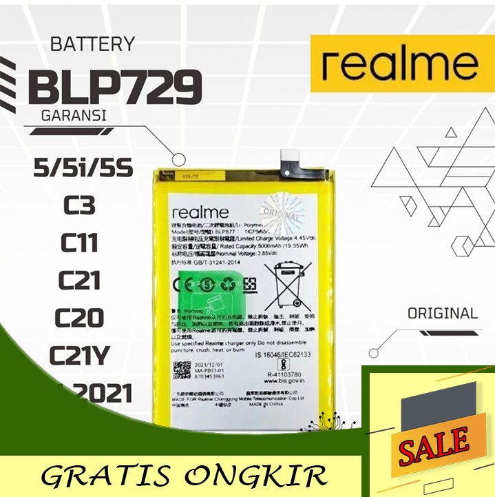 Baterai Realme C3 C11 C21 C20 C21Y C11 2021 / 5 / 5S / 5I / BLP729 BLP 729 Original 100%