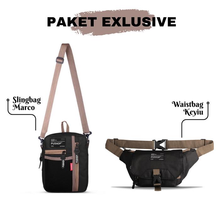 PUSHOP PAKET KOMBO HEMAT TAS SELEMPANG PRIA WANITA - BELI 1 DAPAT 2 TAS SELEMPANG PRIA SLINGBAG MARCO GET TAS WAISTBAG KEYIU TAS PINGGANG COWOK CASUAL POLOS - REQUEST BY NOTE