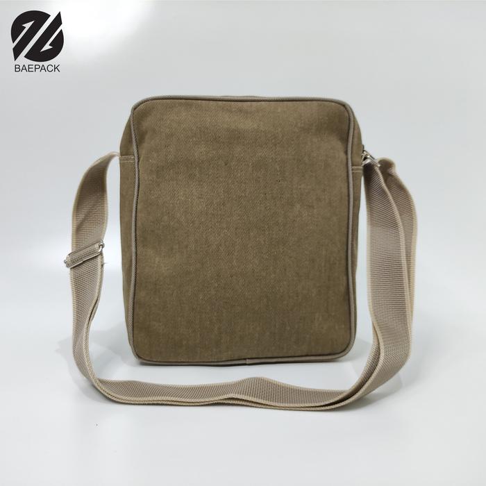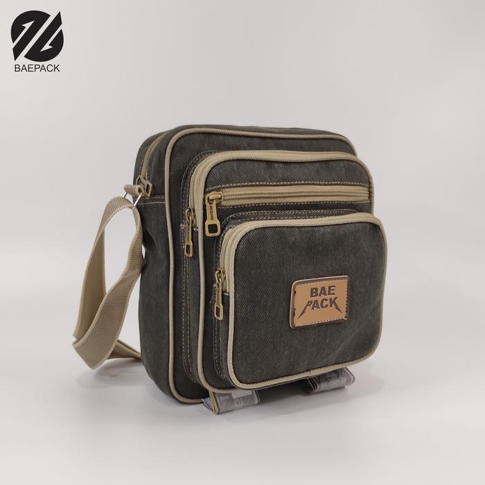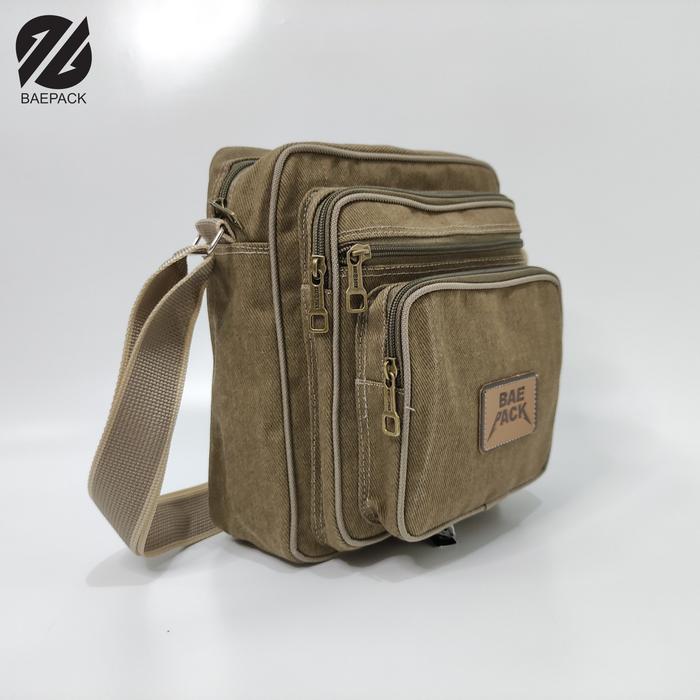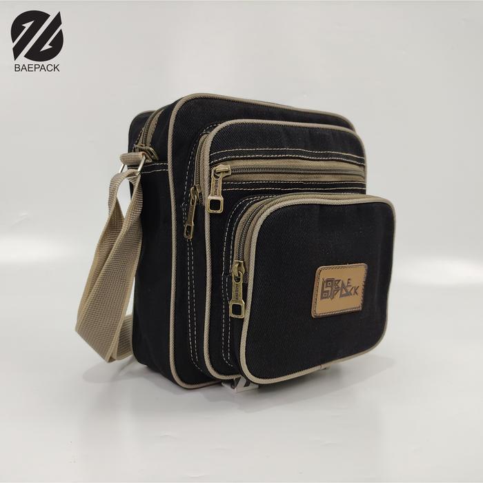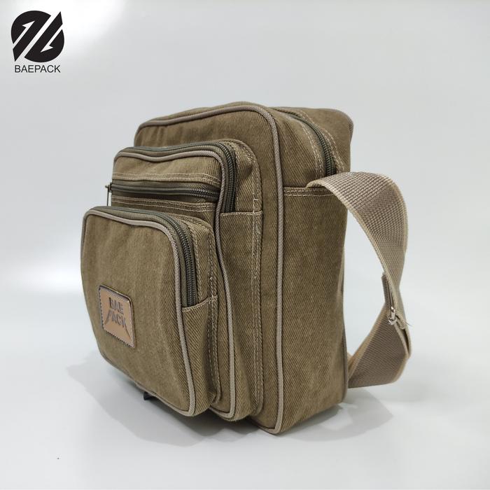 TAS SELEMPANG KANVAS PRIA VOLKER KHAKI ORIGINAL BAEPACK / TAS BAHU CANVAS COWOK CEWEK PRODUSEN ASAL BANDUNG HITAM - COKELAT TUA